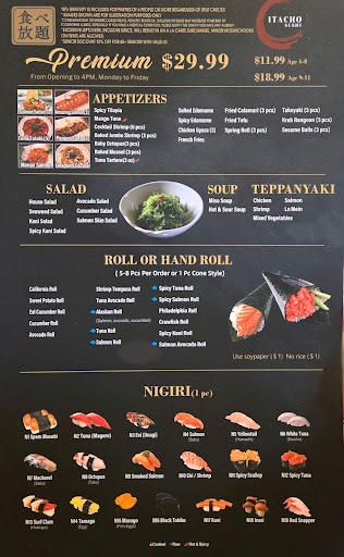 Itâs easily one of the best all-you-can-eat sushi spots in town. Little Sakanaâs (Mira Mesa) sushi rolls all taste the same because they use a lot of the same fillings like artificial crab in every roll. Isushi has good variety but they are far (Chula Vista). The fish is incredibly fresh and cut to perfection. Everything tastes high quality, not what youâd expect from a typical AYCE experience. The menu has a great variety, from sashimi to creative specialty rolls, and every dish is beautifully presented. The only downside is the fact that salmon sashimi and nigiri are no longer on the menu. Although smoked salmon is still on the menu for sashimi and nigiri. I got the Ultra menu because I wanted to try the wagyu and scallops. The wagyu was really good. The scallops were good as well but I wish I selected 3 orders of wagyu and one scallop order. One other con, are the soups, the miso, hot and sour, and tonkatsu ramen were all on the watery side.