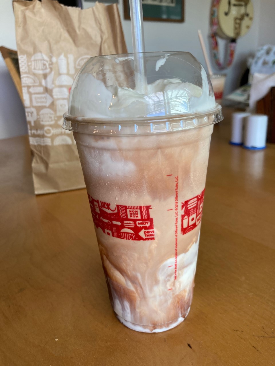 update: they were out of shakes and gave us a drink and cheesecake... my friend...