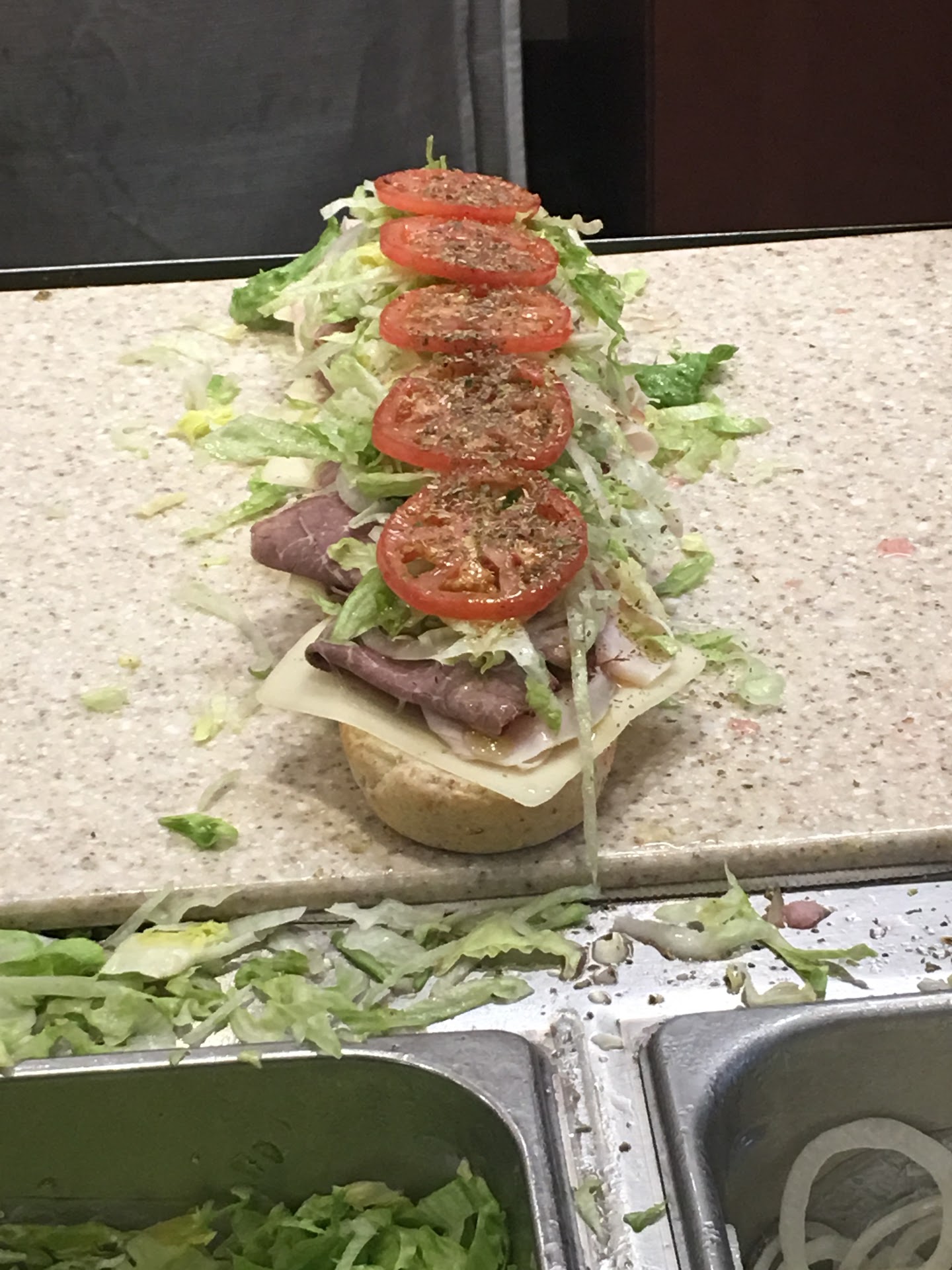 I just got two $17 subs from there when I was planning on buying 6 for a picnic I am having, after the second one, I decided I will go to subway to get the rest because out of 3 workers, only one had respect for their customers. The old lady who is working there had so much attitude, I asked for extra onions and she said "You want MORE??" and I said yes, after when she was wrapping the sub, she wrapped it so horribly, she tried to rewrap it so I asked if she could wrap it in two. Like two cuts into one.She stared at me for about 3 seconds then she flipped the sub so aggressively, one of the workers in front of me made a weird face at her, and was just as confused as me. I tipped the worker in front of me $5 for each sub because she was very polite. I was going to not buy the sub but I decided to just brush it off as her just rushing because there was 3 other people behind me. When I opened the wrapping of the sub when I was going to eat. It had mayonnaise and tuna coming out from the sides and the wrapping had mayonnaise on it, so did the top of the sub. This is very unacceptable, I have been going there for over 4 years now, but this is when I decide to stop. The lack of respect is horrible. One star for the ONE worker who had nothing...