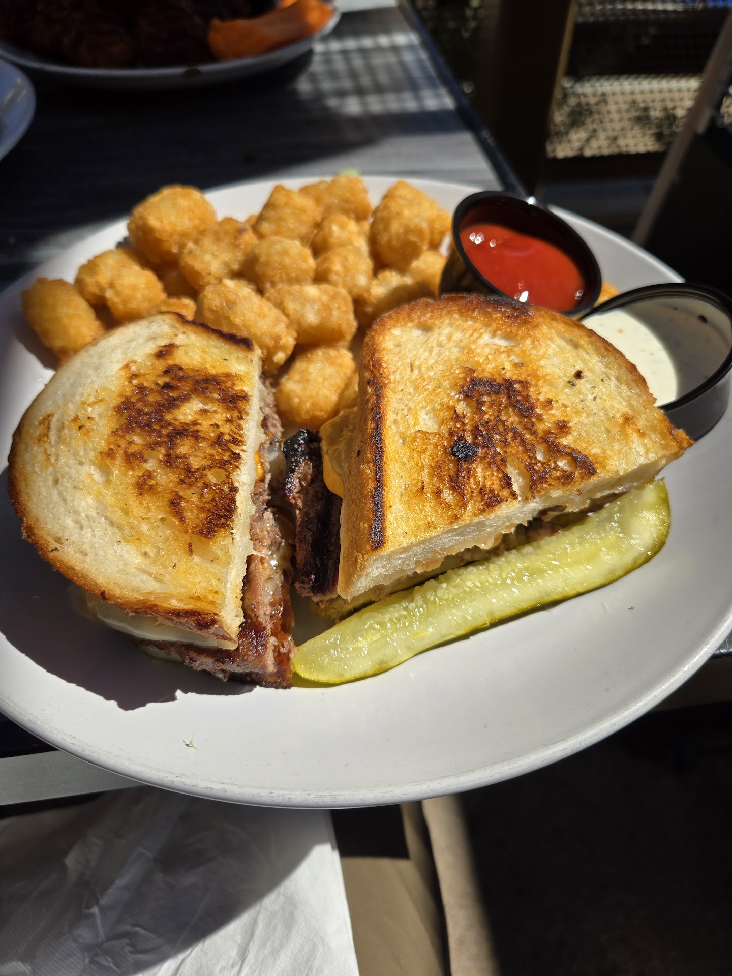 The food is solidly 4 stars. It's your standard pub grub, at least the stuff we got. The type of food that's greasy and satisfying but doesn't stand out in any way. I think if they halved their menu options they could make their remaining food a little more fancy and therefore worthy of 5 stars. As it stands I could see coming back for the patio (with working umbrellas) but not specifically for the food. I will say this: they have great portion sizes. We got a full extra meal for 2 from our leftover tots and wings.