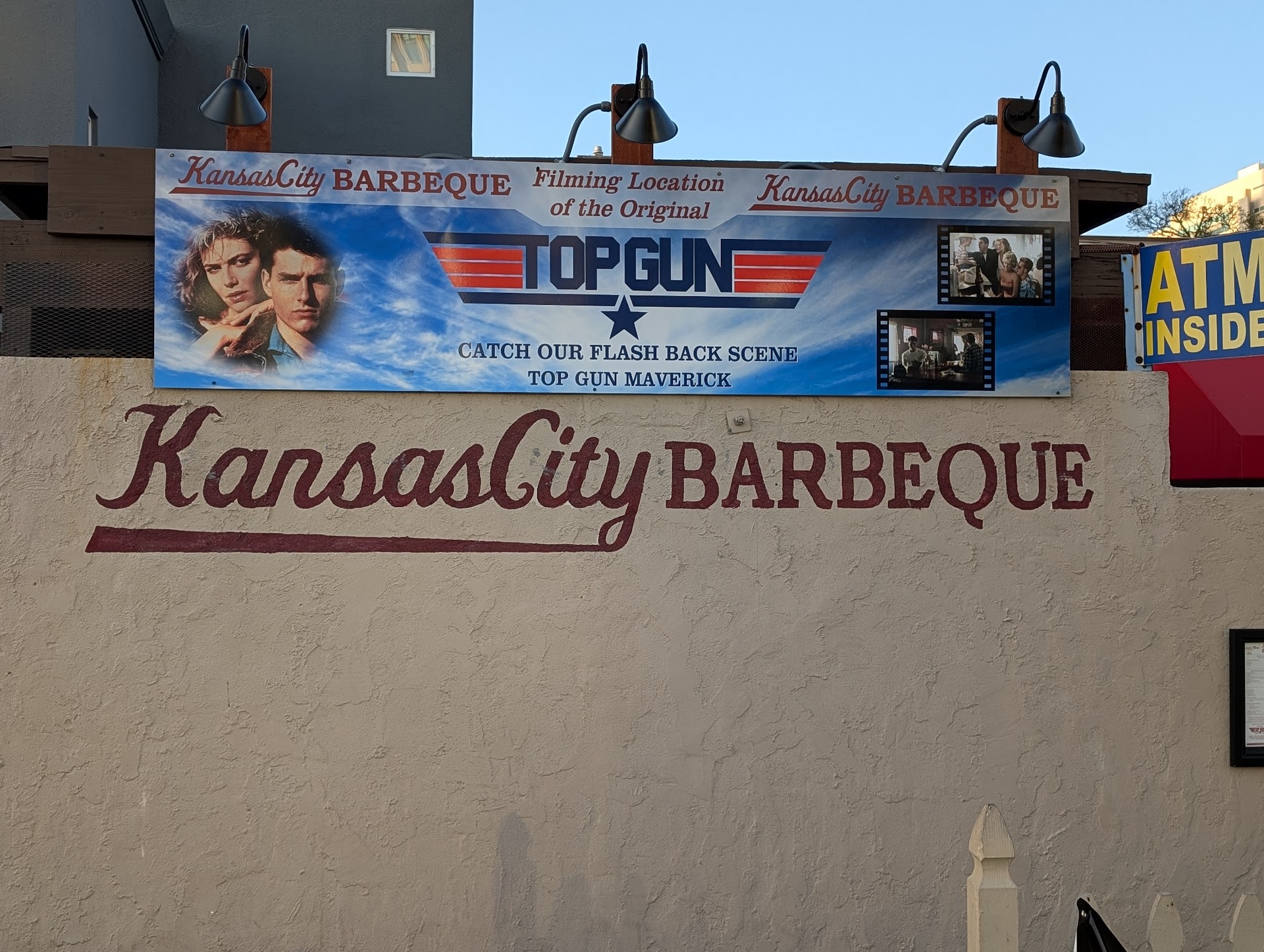 First, we arrived when there was no one outside, neither customers nor staff. We waited next to "please wait to be seated" sign. In like 5 min a somewhat surprised girl emerged from inside, offered us a table and instantly disappeared. Few minutes later a waiter going by Tyler (that was in our receipt anyway) brought us 2 menus and asked what we were going to drink. I ordered an Orange Ave With Coronado because I wanted something local. Tyler commented along the lines "meh, it's basically (something we haven't heard of)". My wife just asked for water because it was a hot day and we've just had a long walk. Then she asked for a glass of wine too. Tyler took our order and was gone. Some other person brought our drinks (no water), the wine was in a glass like kids drink their milk from. We told her we're ready to order. It took a while for Tyler to come back to take our order. When he asked if we're first time here and we replied that no, we'd been to Kansas City BBQ the very same day 10 years ago he told us well, I suppose there are some changes in the menu. Remembering our previous experience we've ordered the same meal we had back then - pulled pork plate. The food that was given to us was nothing like both of us remembered - the pork was somewhat dry, lacked salt and was very generic and flavourless, almost tasteless. I guess plastic single-use cutlery was a perfect match. Now about the atmosphere and general vibes - we've come to an American bar proudly reminding us that a bar scene from the original Top Gun movie was shot here back in 1984. Well, to our displeasure all music that was heard from inside the bar was European, I mean those were good songs from Beatles, U2 or Genesis but that isn't something you generally expect at Top Gun themed American place. Our visit ended with Tyler asking if we wanted something more because he seemed to hurry elsewhere. We said no and asked for a bill. He brought us a printout and a pen and disappeared. I had to chase him asking for a payment terminal. For some reason he wanted to take my card. Iām not sure why - Iāve seen a regular wireless credit card machine inside, and Iām not sure if I wanted to use my Google or Apple Pay - would he want my phone or my watch? Anyway, I got my card back and left. I will check if the amount charged on my card matches the check I have because my card was taken out of my sight and I have no idea what happened behind the scene. Hopefully there will be no need for chargeback.