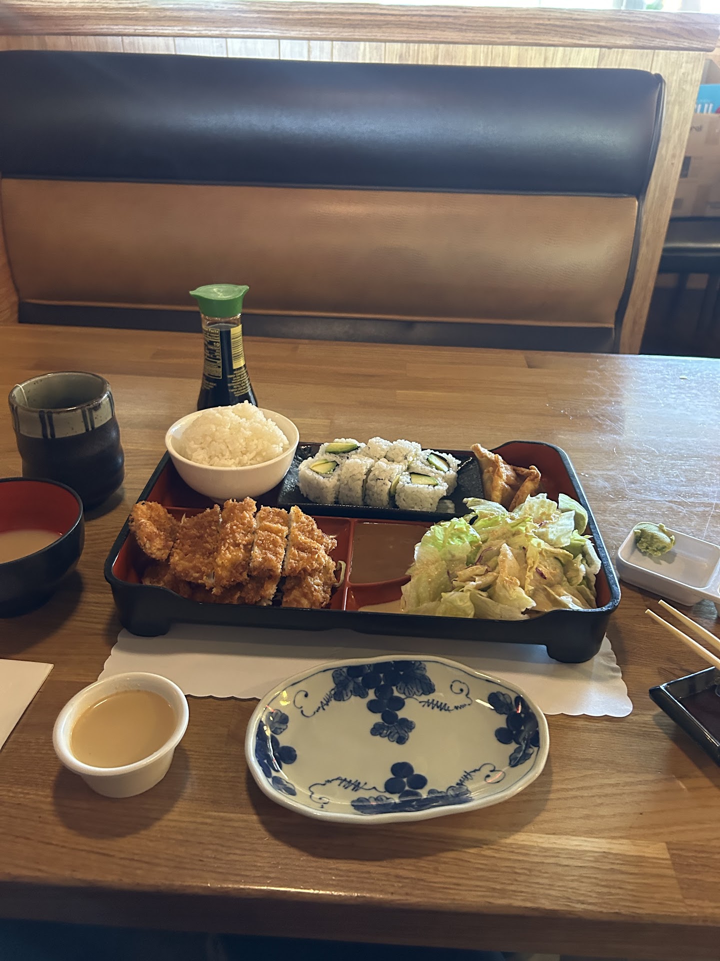 The California roll appeared to be almost room temp. I was a little worried about it, but it tasted fine. It would have tasted much can better if it had been colder though. The rainbow roll was fine (not great) but, no complaints. The Gyoza was super salty, like they seasoned it after the fact with salt.