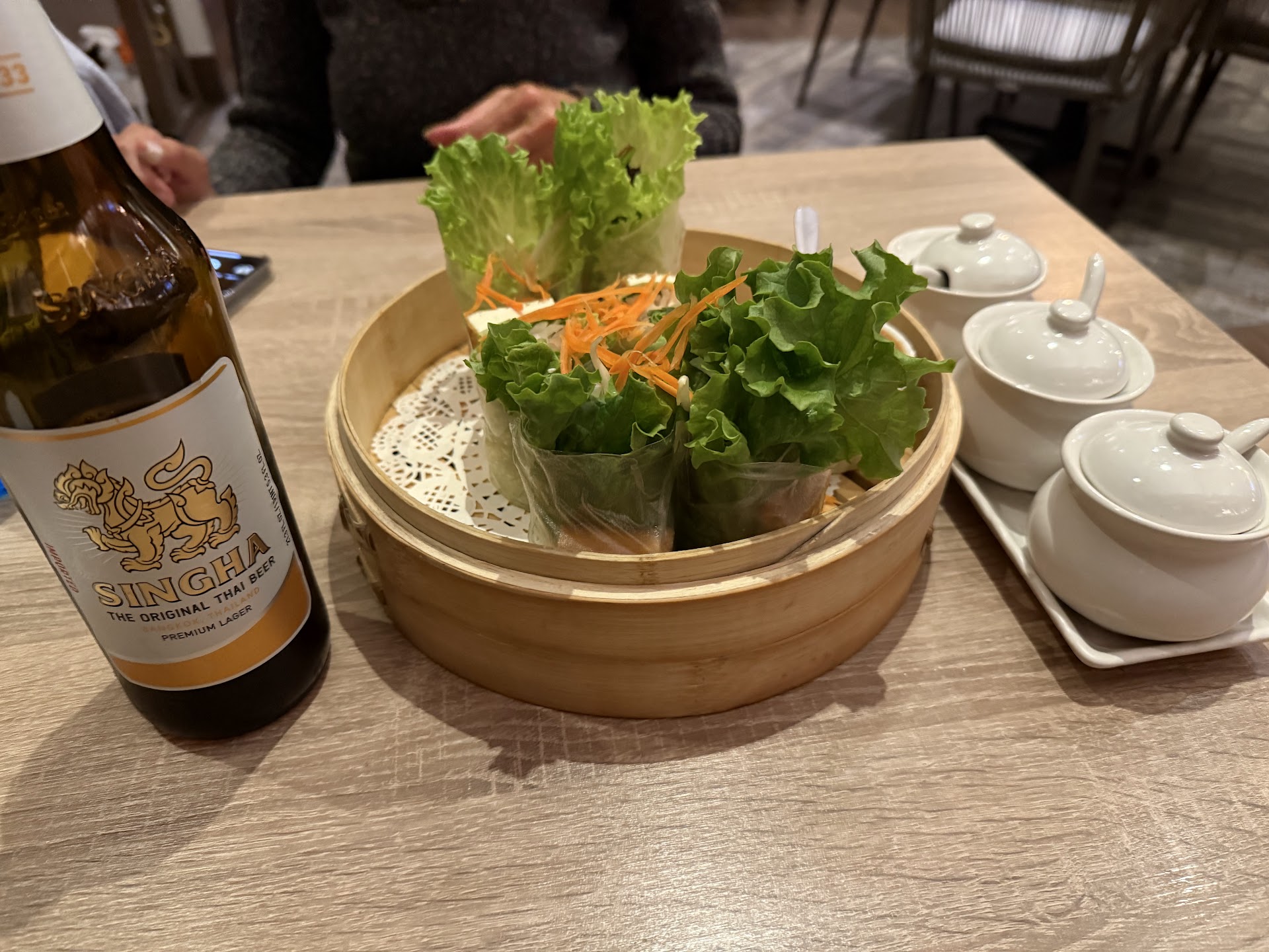 Great new Thai place! This location on Girard has been a few different Thai restaurants, but this is the best one yet. It has a very nice atmosphere on the patio and inside. It's relaxed but still seems elegant in a Thai sort of way. We had the fresh spring rolls with tofu and they were some of the best I've ever had. Anywhere! Totally fresh and vegan, don't miss them. Nice peanut sauce and a complete spice tray let's you enjoy it the way you want. Our mains were pumpkin curry and tofu soup. Both were excellent, the pictures tell the story. The curry had lots of pumpkin and the sauce was nice. The tofu came fried, and I think it would have been better soft. Be aware that this spice level is very low, much milder than you'd expect. I ordered it 4 out of 10 and there was hardly any real zing to it. Don't order less than a 5 if you're after authentic flavor. And if you really like spicy dishes you should go an 8 or higher. Their menu notes the vegan dishes and I noticed the red curry didn't show it. It turns out that it uses fish sauce and they let me substitute the yellow curry which doesn't have it. The service was super nice be well informed and flexible. They have Singha and a decent beer selection. It's really a great place...