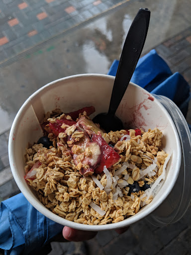 A warm greetings from behind the counter I felt truly welcomed. What could he get Acai is what i asked... and there is nothing after that Until The bowl delivery was spot on Ratio of fruit toppings spread evenly Proportion ratio brry acai frut tootmagoot wicky wick wish it was in...