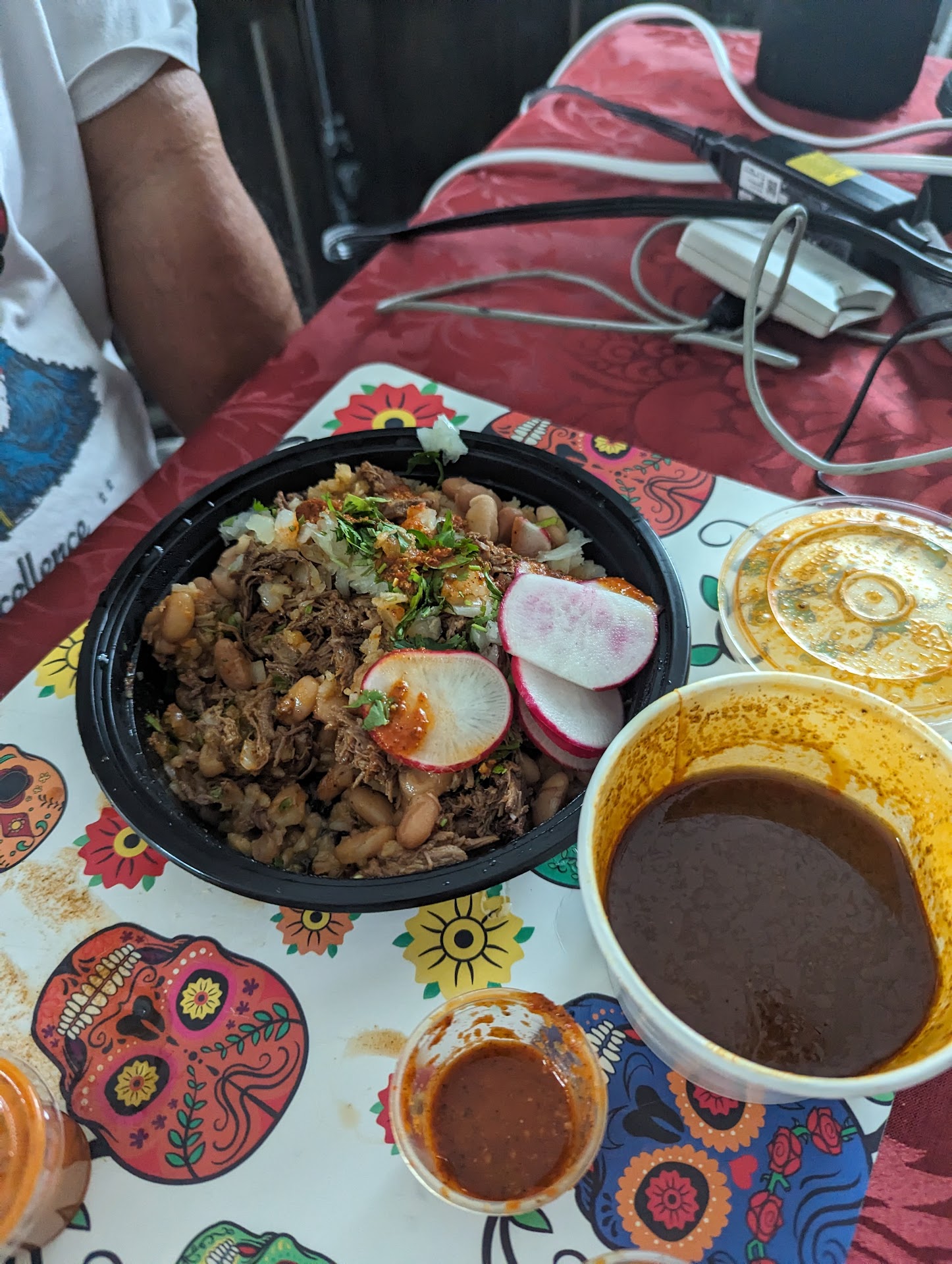 The consome came out first and was a great start. I like ordering the consome since it gives me a good idea of what the Birria will taste like. Not too salty or greasy, and had amazing flavor. I chose to get it without the meat since I had ordered the 3 tacos. The standard Birria Taco was a great place to start. The Quesataco was next with the handmade tortilla. That cheese and tortilla combo was tasty. But my favorite out of the 3 was the Tatemado con Nervio, which is the Birria kinda fried which gave it a slightly different taste. That along with the bits of tendon is one of the reasons I would come back.
