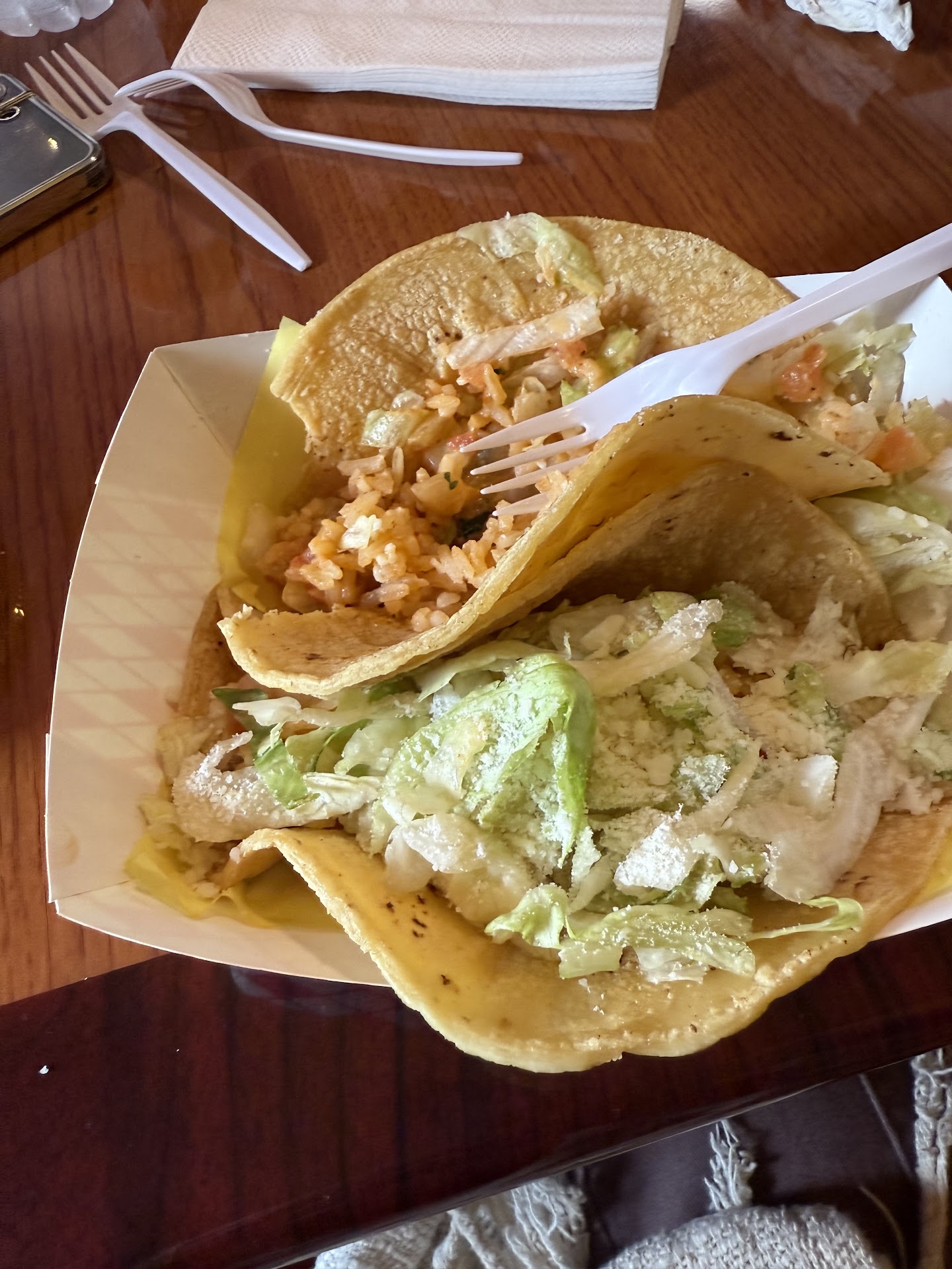 Even more bizarre, the tacos had greasy rice inside them. It didn’t add anything—just made the texture odd—and was paired with plain cabbage. No avocado, no pico, nothing fresh like the meat tacos had. It felt lazy and unbalanced, like no real effort was put into the dish.