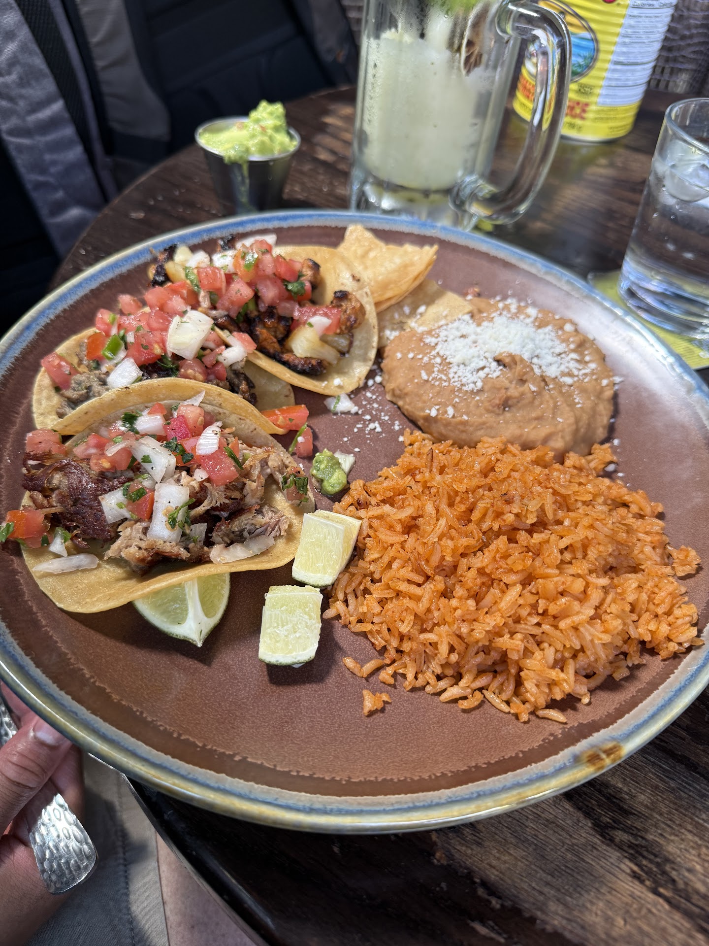 It honestly took a while for the food to come. It was about 30 minutes after we placed the order. We got the burritos wet but my opinion is that they were way too wet. Such a deep pool of sauce that it almost didn't fit on the plate and spilled.