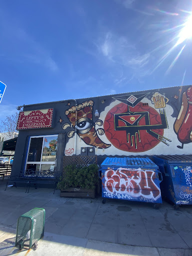 Read moreThey’ve got some yummy food! We spent about 15$ per person and the parking here is HARD to find!!!! There were a few parking spots by the restaurant but only a few… We ended up parking in the Jack in the box and walked to this restaurant 🥲 This place has indoor and outdoor seating but both were tiny, probably 12 people for outdoor and 6 can fit in the indoor seating area. And there was no AC inside so we decided to move to outdoor seating to get some air. This place is well decorated with some cute stickers and pizza decorations. I love the open window that you can see through the kitchen while they make your pizza! We had two slices of the deep dish pizza (pepperoni and sausage flavor), loaded fries and a C.B.G.B. aka the Italian roasted beef sub. The pizza was decent but we were really impressed with the loaded fries and C.B.G.B. The loaded fries were really good! The blue cheese and some fat pieces of bacon 🥓 were the highlights but the size of the fries was a little small.