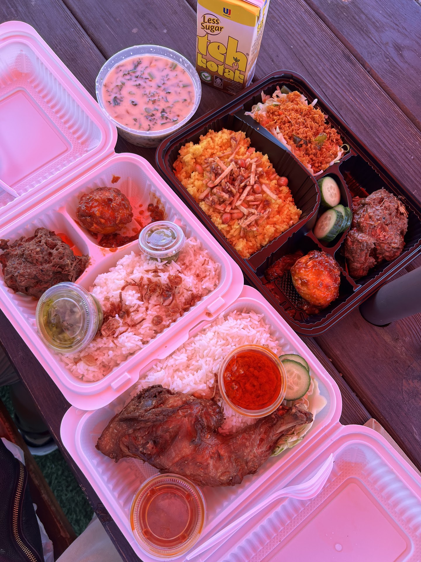 The pick up process was pretty interesting. Lezat is in Barrio Food Hub which is a ghost kitchen spot where you can order from a ton of different takeout businesses. There were quite a few cars waiting directly in front but street parking wasnât too bad if you go further down. We ordered online ahead of time for pick up on Lezatâs website and I got a text when it was ready. It told me the locker number that my food was in, I clicked âopen lockerâ on my phone, it opened on its own, and I grabbed my food. Their website had a phone number if you did want to actually talk to someone. Thereâs a turf area out front with a few tables if you want to eat right away.