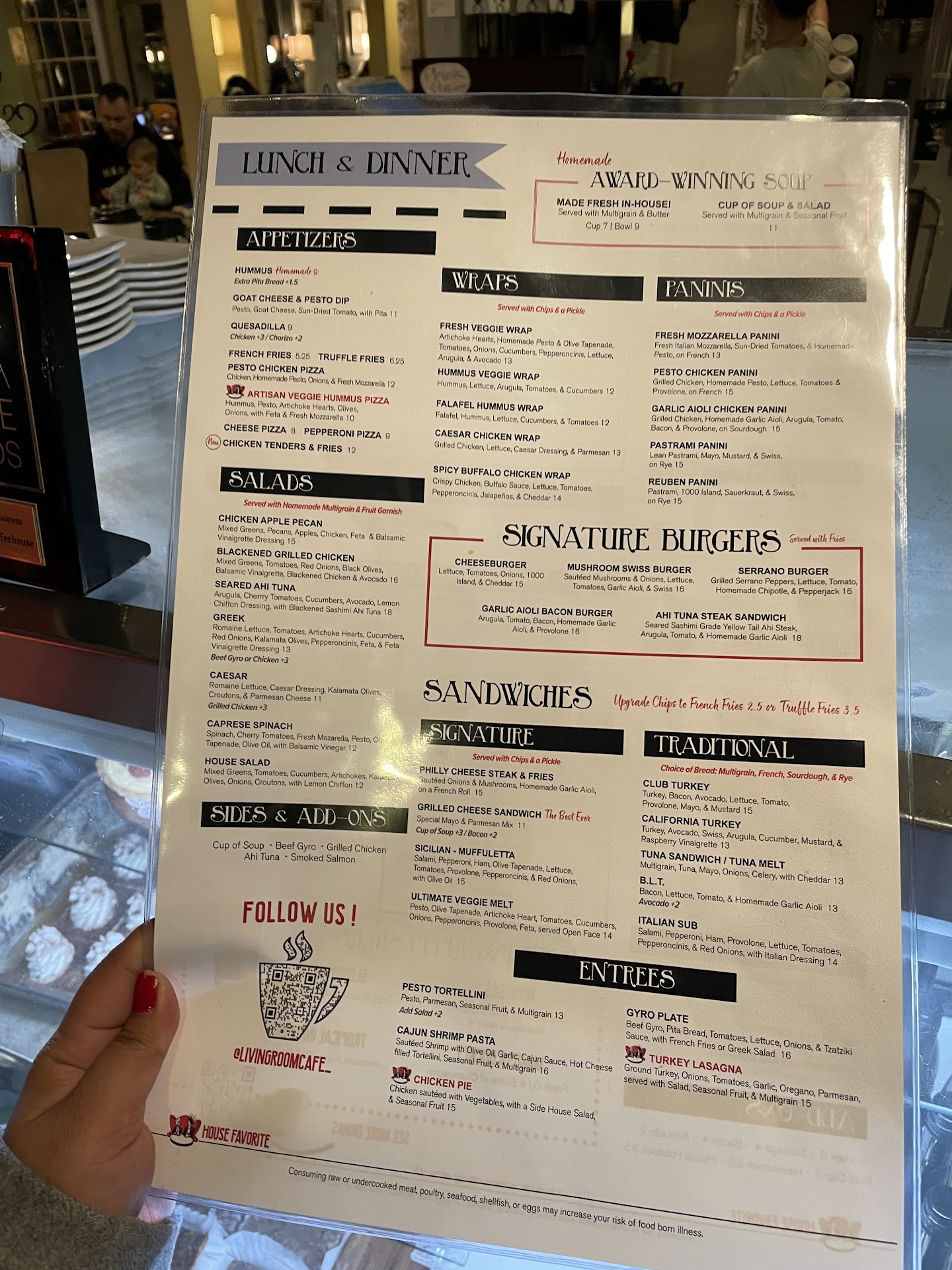 The workers, food, and, drinks are amazing!!! Would give 5 stars if not for the constant unwelcoming and standoffish energy from patrons. I've never felt more uncomfortable trying to eat a meal and make conversation in a coffee shop... To the business owners, have you guys considered adding an OPEN SEATING sign anywhere??? Seating inside quickly fills up with tables of 4+ chairs filled by one person plus laptop sprawled out... Even the couches and larger seating areas are more likely than not filled with 1-3 people plus laptops and books. When you come in just to order food and try to find a spot to sit everyone glares at you like your intruding on them. I can feel them praying that I'm not going to sit near them or make noise in their quiet space... When I am so bold as to sit at a large table with one person and 4+ open seats containing a smidgen of space for my plate the "study hall" patrons silently wish me away from the table or act like I've done something wrong by sitting down to eat my meal... Did I miss the memo? Is this a library that serves food? It feels like some may EXPECT this to be a library/ study hall instead of a restaurant/coffee shop... Seating outside is an option, if you don't mind the cigarette smoke... Unfortunately it's not very appetizing for myself. I've had to regularly leave The Living Room to go to other establishments because of the harsh patrons who do not understand open seating or seating themselves respectfully for the business to have the ability to house more customers... Again LOVE the food. LOVE your servers. PLEASE address your seating issues! Your losing...