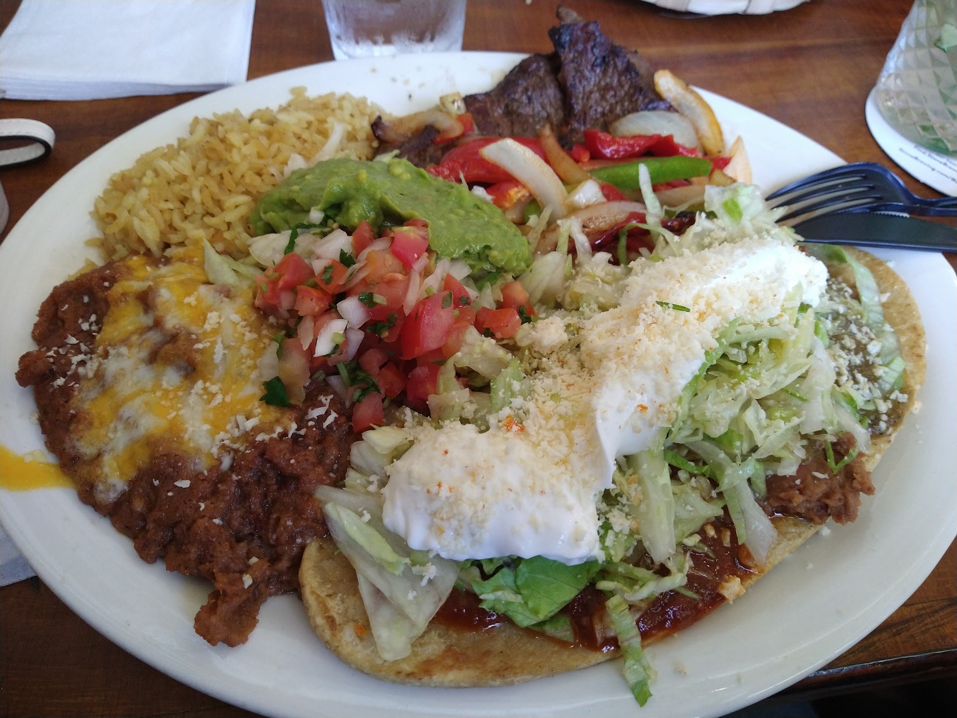 The food was really good and plentiful, and the service was outstanding. All of the folks who waited on us were pleasant to deal with and responsive to our requests. Our experience started with complimentary chips and salsa and a surprise small cup of hot bean soup, which was delicious. The chips tasted a little commercial, not bad by any means, just a tinge of Tostitos flavor. The menu is extensive to say the least but well organized making the experience less intimidating. Our meals arrived, just before we filled up on chips and salsa, and they looked great and were substantial in amount.