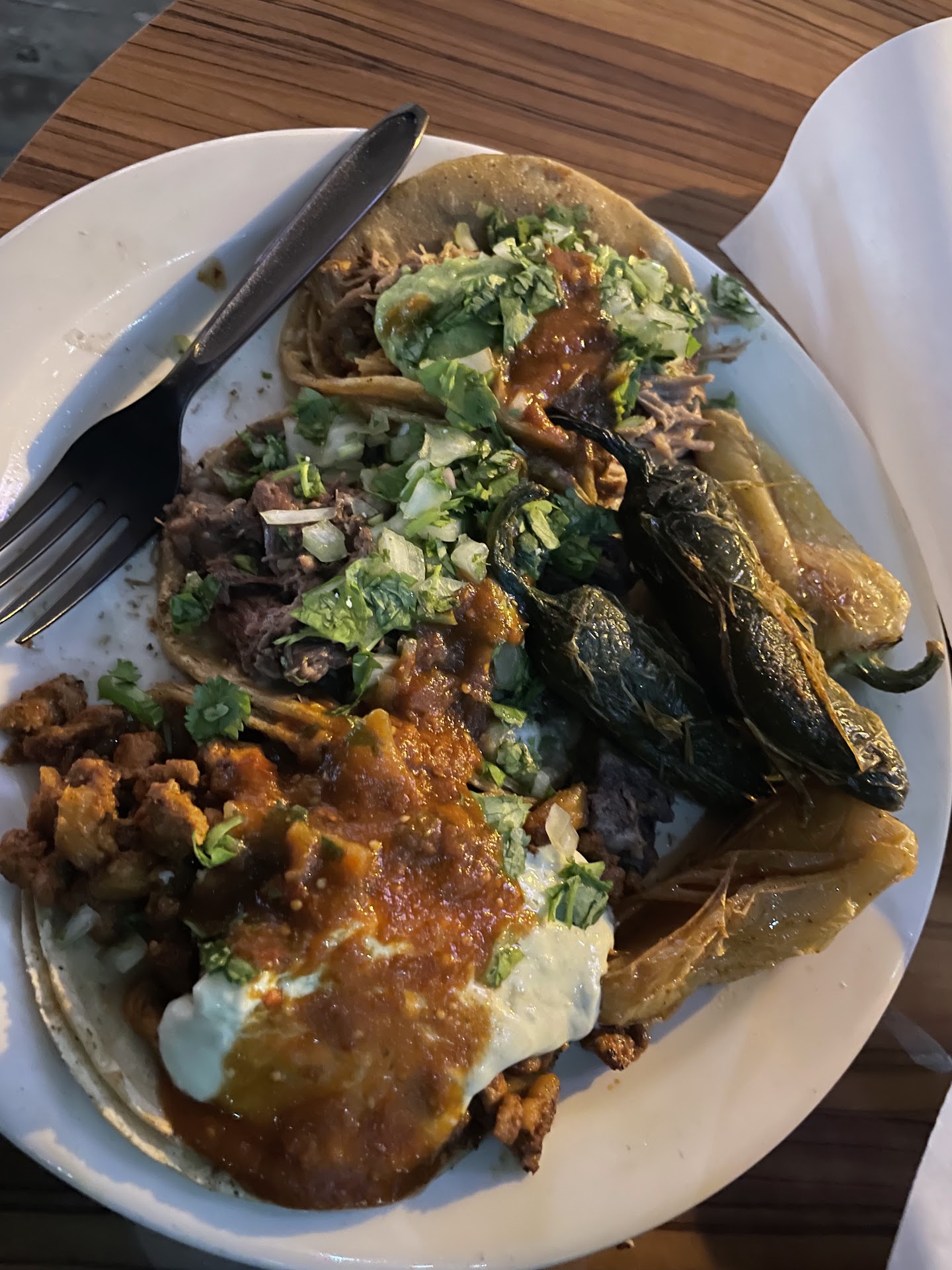 Read moreService is quick and friendly. You can either order ahead and pick up or dine in. Opted to dine in and we were served chips with a flight of various salsas. Salsas were delicious as were the chips. Placed our order and th food came out within a reasonable time and hot. Everything was seasoned well and delicious. Only downside was that the huarache I ordered was overly cooked and a little difficult to cut with the plastic utensils they give you to dine in. I requested a real knife and was given a butter knife with no grip so cutting was impossible and my fork tips kept bending every time I attempted to cut the huarache or the stringy skirt steak. This made enjoying the meal a little difficult so I was unable to finish my meal in house. Also ordered a pepino picoso margarita that was delicious! They did not skimp out on the tequila and it went down smooth. Only downside to this drink was A) My glass had a large crack down the side that was allowing my drink to leak out a bit and B) Our waitress took away my glass before I had finished the cucumber bits and my lollipop that came with the drink. Other than that, the presentation was fun and the drink was great. To recap: Food is delicious, but depending on what you order, eating a $20 meal with plastic utensils is not enjoyable. Drinks are great. Service is quick and friendly. Parking is rough, but this is unfortunately normal for the location. Overall, I plan on going back in the near future in the hopes that my next visit...