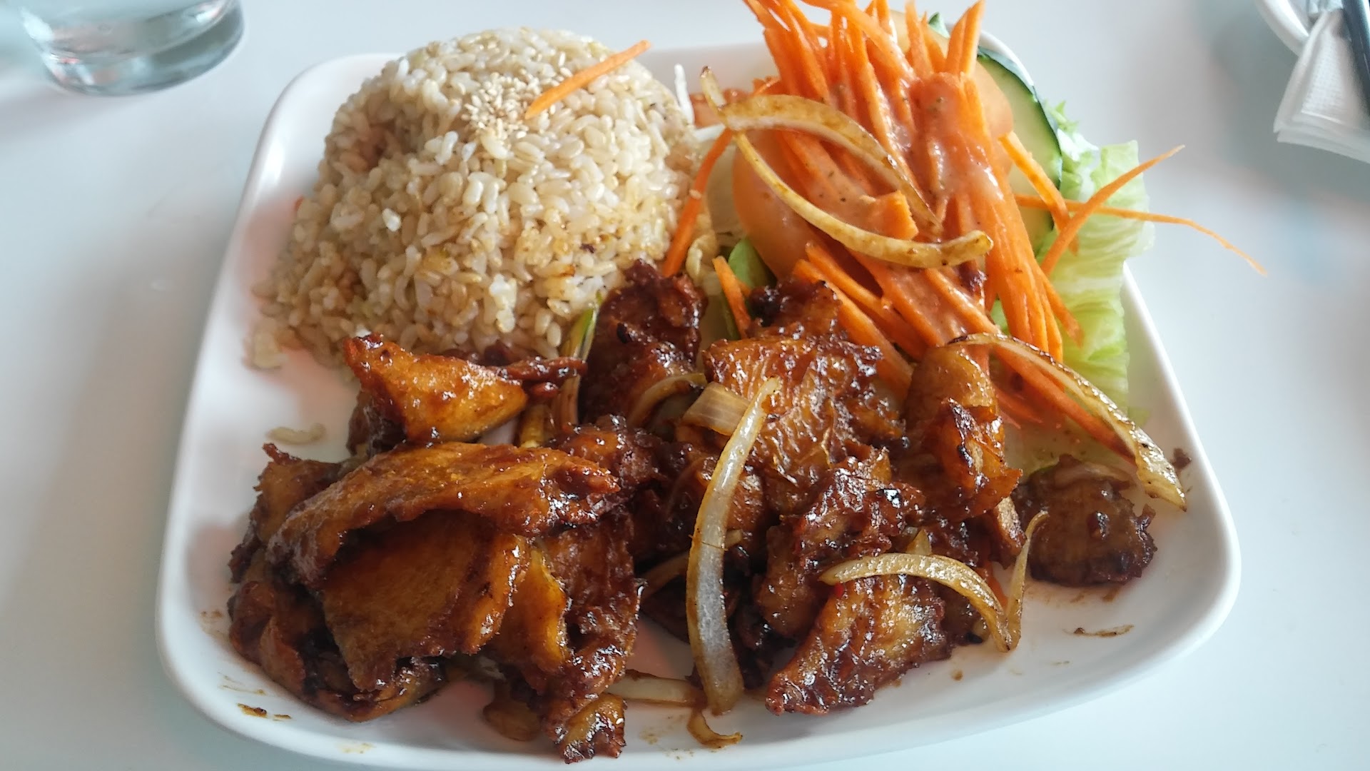 I haven't been back since they changed anything. And I felt ripped off...they let me order the Coco Tofu but when it arrived it had no coconut or peanuts. It was totally covered in too much sauce and overly salted. I wish they'd told me so I can try something else. For $16 it felt like a big waste. The rice was too much of it, and old and completely clumped together, and my salad was wilted and had zero crunch. I was really disappointed. The service was whatever. No one greeted us or checked on us while we ate that I recall. Maybe I didnt notice. And it was very empty. (Monday night) so it wasn't due to being busy. I'm sad I took the day off cooking to overpay for salty terrible food. They give you a free treat if you show them your good review so I know why they kept their good ratings from the old owners. I wish I had complained and gotten something else, but my husband's meal was also a tiny sandwich and a plate full of fries. Not at all what we used to eat here. For $16/17 each plate I left knowing there's no way I'm coming back.