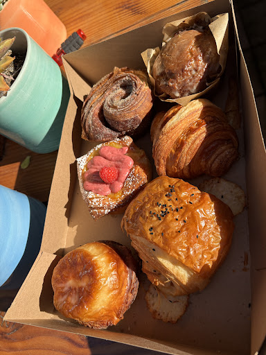 Read moreLATE POST visited 07/29/23 Wasn’t sure what to expect when we came here all I know is that they were quite busy, actually I almost walked in the coffee shop which was next door to Hommage Bakery, it was a bit confusing but if you are looking at the establishment Hommage feat. Lucky Bolt is on the left and the coffee shop on the right, grab your coffee at the shop and pastries (Hommage), meal prep and lunch at Bolt. Ordered- Apricot Kouign-Amann (bussin) and some sort of a Hot pocket which was ok to say the least, I expected a pastry dough but it wasn’t nonetheless, the flavor was there. Give them a try if you’re in the area!