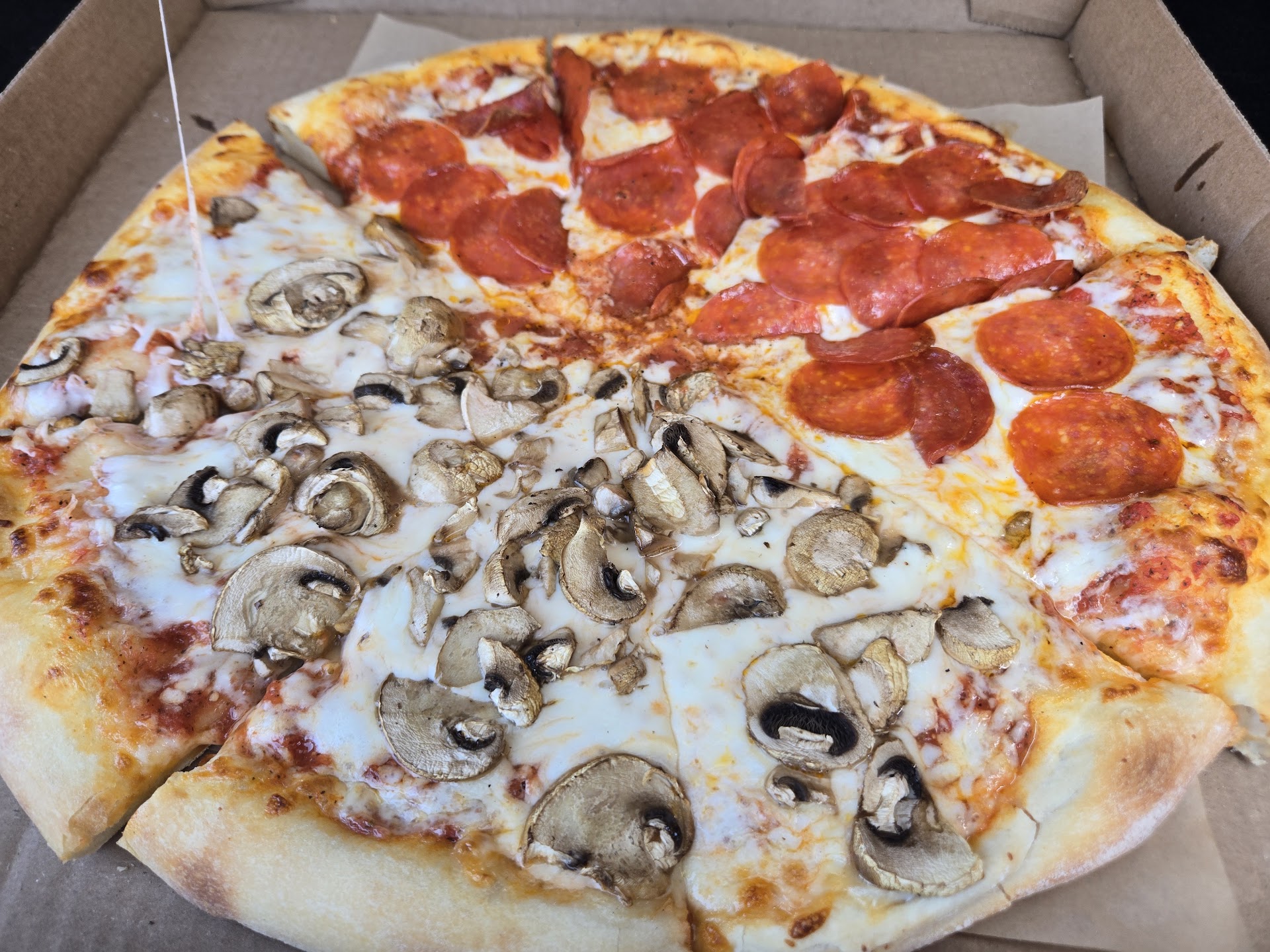 I decided to give this place one last chance ordering their party size pizza (in hopes of getting a decent value) and I'm not kidding when I say it is the worst tasting, yet also most expensive takeout pizza ($93.50 before tip) I have had in my entire life. There is very little sauce on the entire pizza, and there are salad plate size spots on the pizza where there are no toppings despite charging ~$17 extra for two toppings. That and the crust is wider than on their smaller pizzas making the pizza mostly bread. These issues disappear the smaller the size you order, to the point where the toppings on individual slices are incredibly generous. So I am assuming it is an issue with whoever owns the restaurant or manages the kitchen setting toppings portions, not the individual employee who made my pizza.