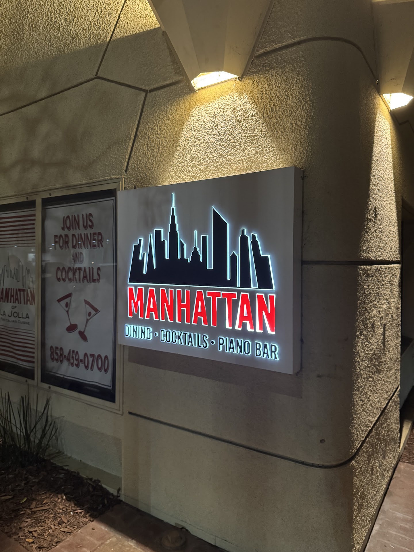 Read moreMy family and I have lived in La Jolla since the early 1990s and Iâve been coming to this Manhattanâs of La Jolla since the mid 1990s. I love how it is a time capsule in that it has not changed much over the years but in a good way. I will say that they used to have a double cut veal chop and now it is a single cut and thatâs what we went for specifically every single time for decades so Iâm hoping that they bring that back. Aside from that itâs located on the ground floor of a small boutique hotel in the village of La Jolla. Parking is fairly easy in this part of town, your best options will be street parking for free or valet. Our server was extremely polite and honestly service here is always terrific. It used to be filled with older Italian men that would sing Italian love songs but now it is more of the standard full service restaurant service. Itâs also very dimly lit and kind of reminds me of a steak restaurant you would see on the East Coast. It makes for a much more private and enjoyable experience.