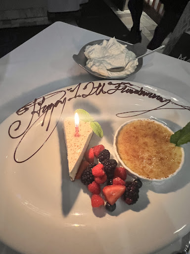 For dessert, we ordered something sweet, but when our server returned, they also brought out a cheesecake with candles and “Happy Friend-aversary” written in chocolate sauce. It was such a kind, personal gesture that made us feel truly celebrated.