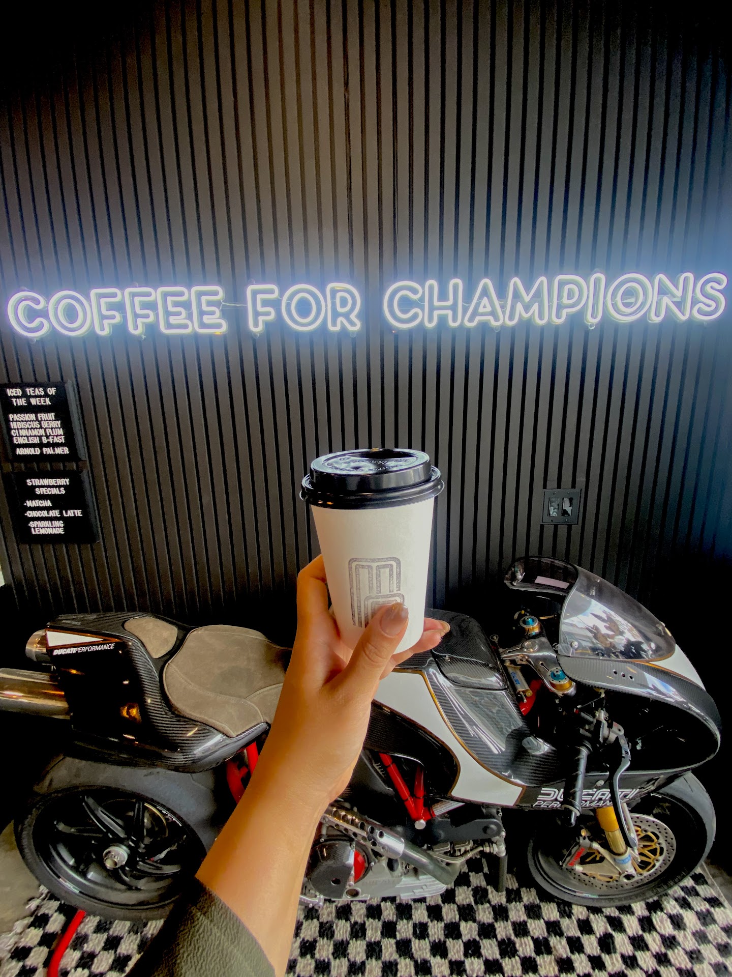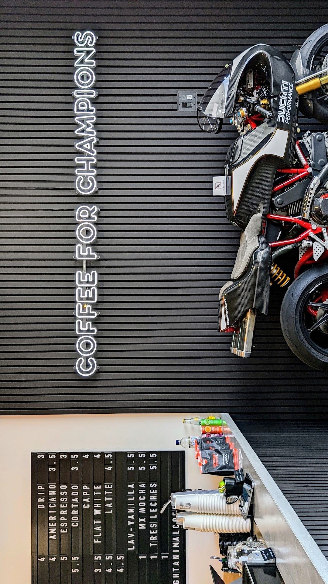 Read moreThis is the hidden coffee gem North Park needed. $3.00 for a generous sized drip coffee (plant milk included) and it was absolutely delicious. I’m not sure what beans they used, but from my first sip I could tell this was a high quality roast. The barista was so friendly too, he asked if it was my first time and he told me a little bit about the store and how long they’d be open. It’s a very cute, modern aesthetic, motorcycle themed cafe, and the seating is minimalist stone yet very comfortable. I can’t wait to come back when i’m in San...