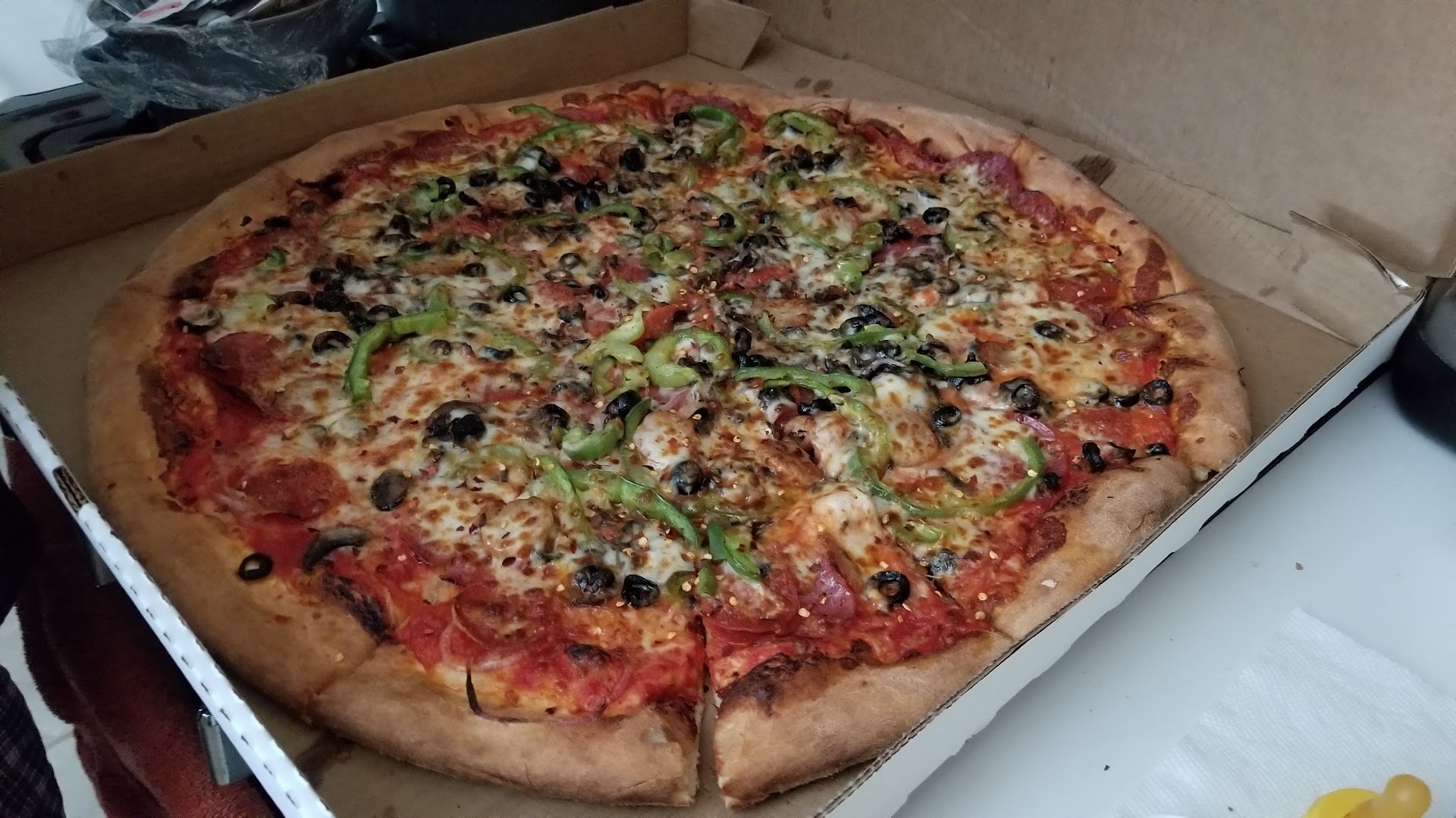 I was not expecting it to be as good as it was. We ordered The Works Thin Crust. It was hot, crispy and chewy in all the right places. Generous toppings and decent cheese. It was phenomenal and very much needed given the major life addition with our newborn.