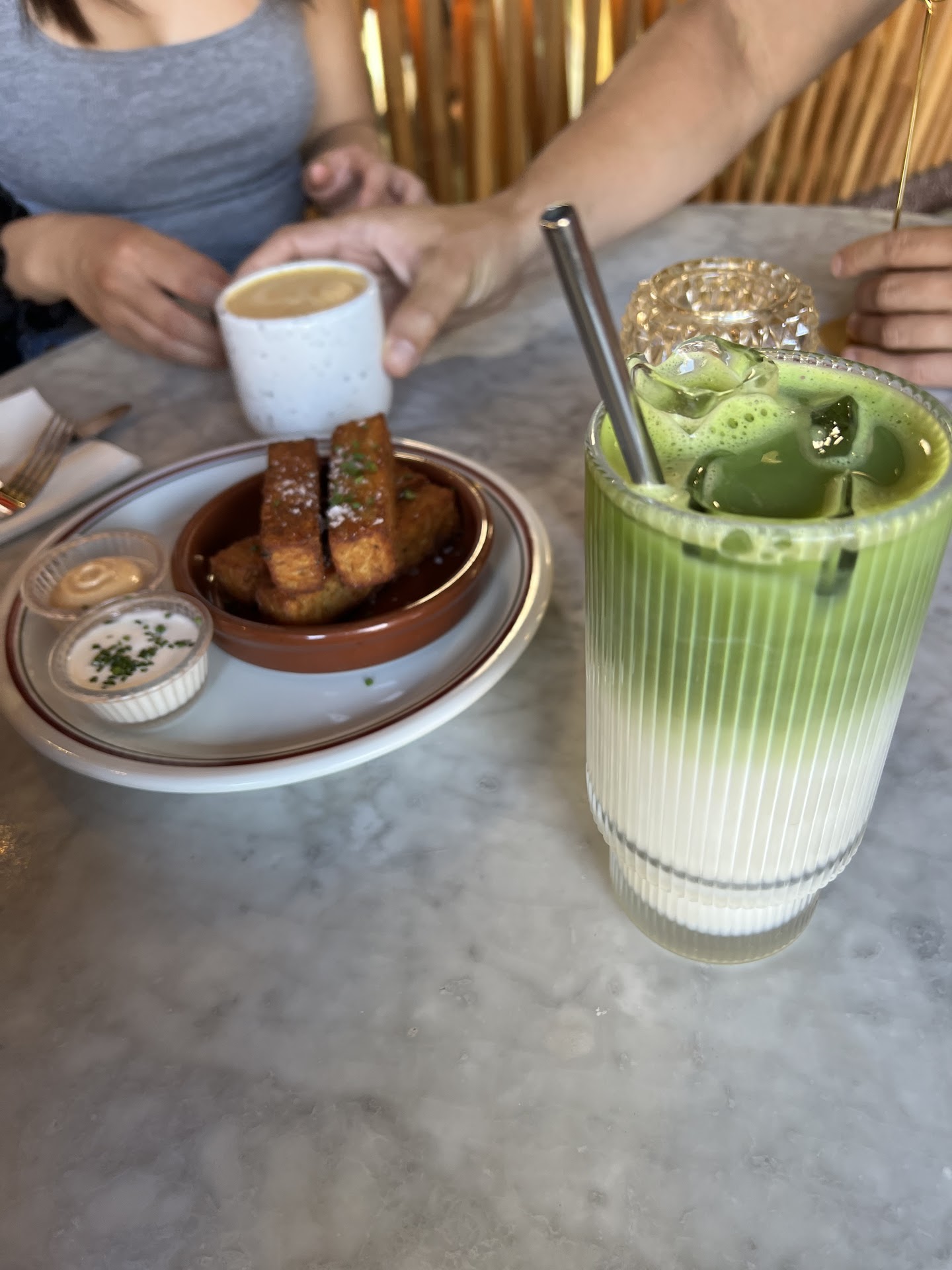 The only downside to my experience was an interaction with the barista. He came to our table to deliver our drinks but did so in a way that felt unnecessarily aggressive, almost slamming them onto the table. It was clear that he was frustrated, likely because we had stepped outside to find a table instead of waiting for our names to be called for the drinks. This was my mistake, I completely forgot that the server had mentioned they would call our names. That said, I would have appreciated a simple, “I was calling your name”. I even thanked him, but he didn’t respond.