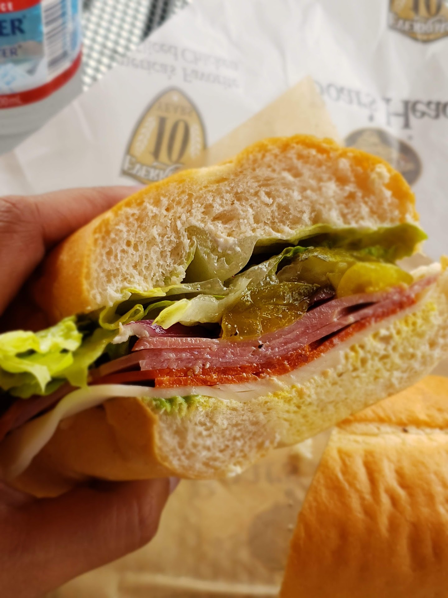 After dropping my wife off at the airport, and driving back to work I realized I hadn't had lunch and was feeling a bit hungry. I asked Google about nearby Italian deli's, and Monroe's Market came up. In my experience the best sandwiches are usually found at a deli within a local market, and I was pleased to find out that this is the case with Monroe's.