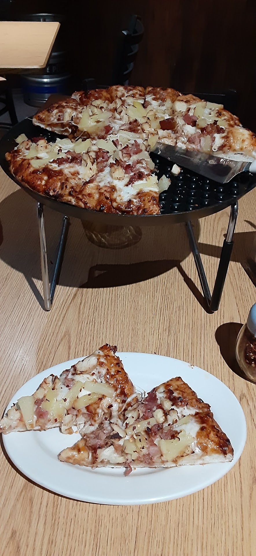ย ย ย Read moreI never heard about this pizza place before. it happens because we were around looking for a place to eat something and as soon we saw it from the parking lot we said lets give a try and we were not wrong! This place has an absolutely amazing ๐. I am very mew with pizza and the one we ordered ๐was fantastic! It has pineapple tho not sure if you can be fanatic of it but was yummy...i heard some people said grease ๐คfor me was perfect ๐obviously take sometime to get to your table but worthy. The only thing it disappoint me after few days was overcharged me. I personally ordered one draft of beer to myself from the table after my boyfriend paid 1 whole pizza and a draft of his beer...at the beginning i didnt want it but when I was eating the yummy pizza i feel i need one, the guy say then you can pay and that's what I did but if the draft of beer cost 15$ then I am wrong. Parking is huge there is not problem at all and everyone...