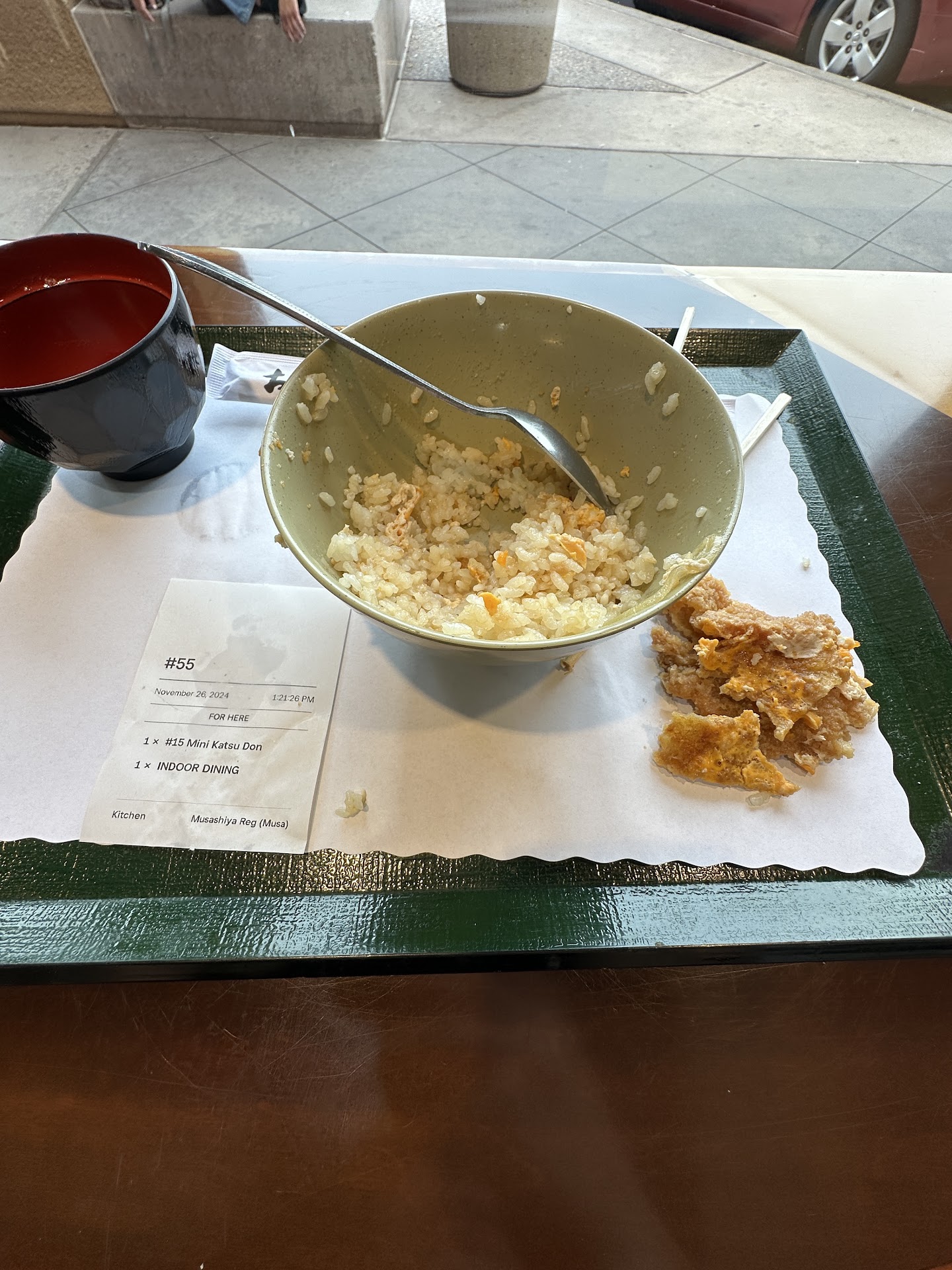 For example, When I got my food, I noticed there was no spoon for the included miso (one positive thing about the katsu don is that it comes with Miso soup), I asked the host if I may have a spoon and they told me people usually drink from the cup and was seemingly-reluctant to grab a spoon for my meal… I may be reading into it. But I felt like I was a burden to the staff, asking for a spoon when served a soup.