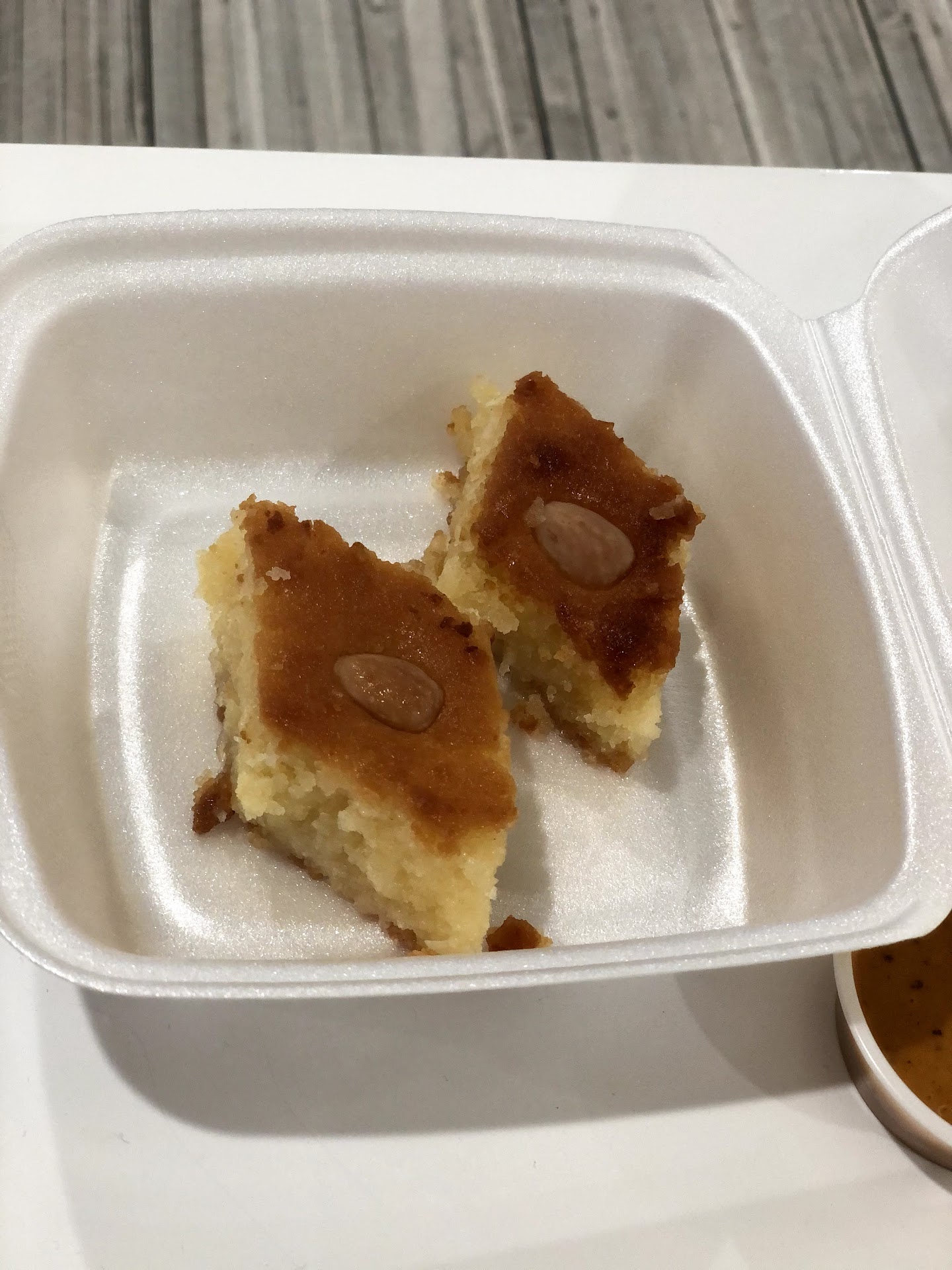 The beef kufta kabob was tender and juicy, but the shawarma was a little crispy and dry. The chicken tikka kabob was so good. The hot and garlic sauces were unique and great complements to the food. The hot sauce was our favorite. I loved the feta on the salad, and the hummus and pita portion on the platter. The hummus was so creamy, and the pita was a great scooper for it. Umar even gave us a couple of pieces of Harisa sweets on the house, which were soft and super moist.
