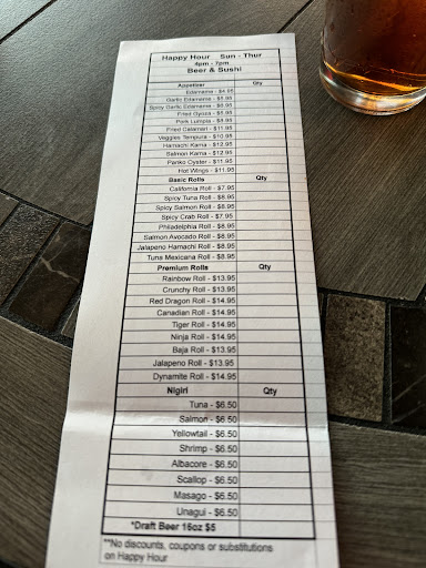 Read moreWow!! They have the BEST happy hour! See picture attached! I had the garlic edamame, from the nigiri option I had salmon and crunchy roll from the happy hour menu. I decided to try their house salad, it was bigger than expected. The house dressing has ginger and it was fresh and delicious. Nice and light option to start off with. The nigiri salmon was delicious and fresh great portion as well for $6.50! Wow!