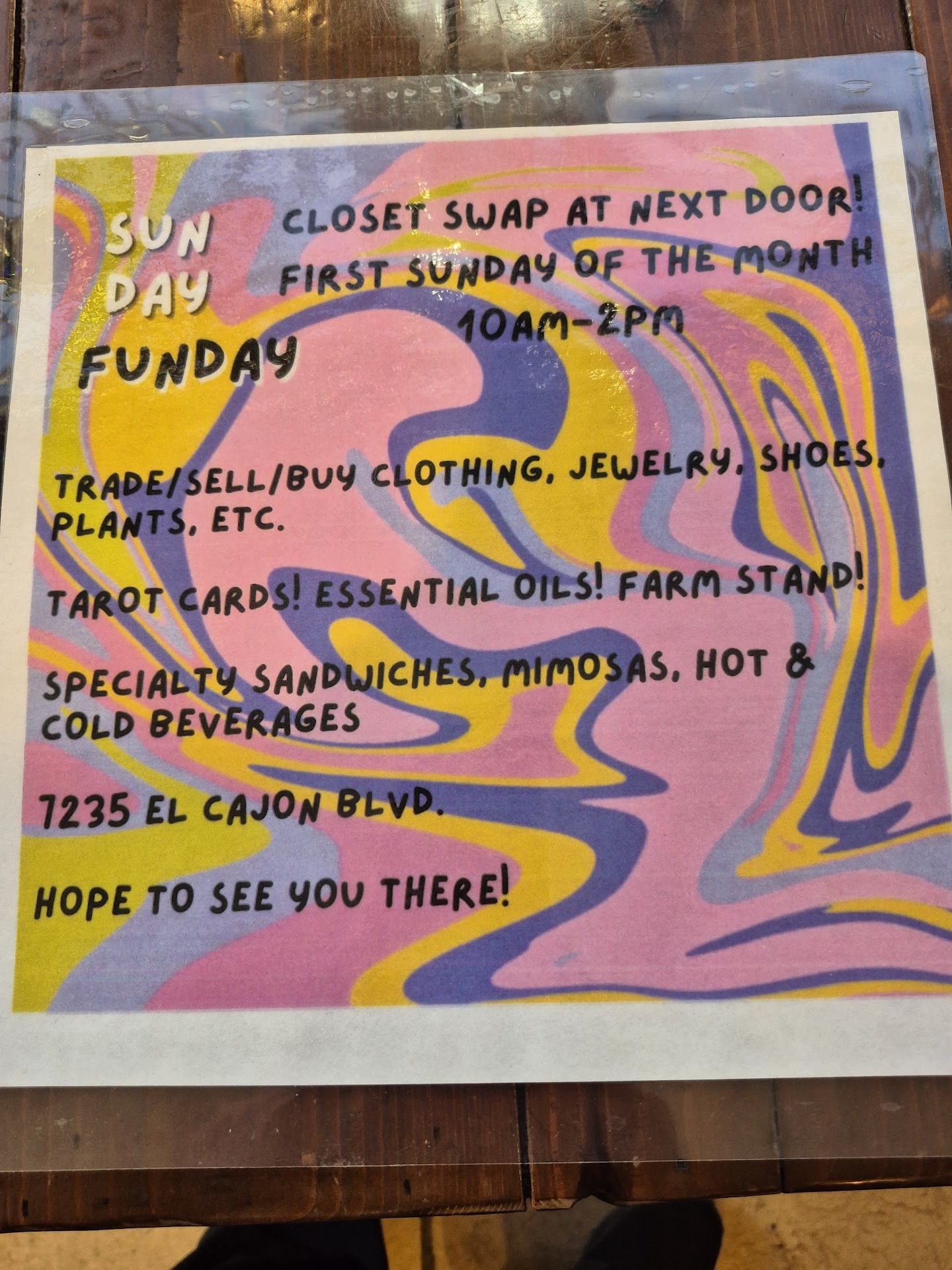 Read moreNext Door is a local gem and very welcome in an area that sorely needs more great places to hang out. While I generally focus more on their beer selection, I do know that their sangria is very tasty, and they seem very serious about their wine selections. My only complaint on the beer side would be the somewhat slow pace of turnover in the selection from week to week, but this isn't your standard San Diego craft beer bar that blows 3-4 kegs a night. The selection of beer is always good, with a good range of styles to suit most tastes, so this is really a minor issue.