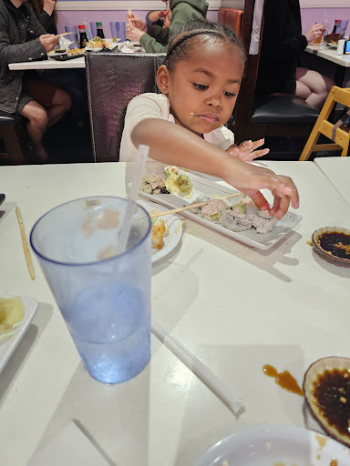 My toddler really wanted sushi. We happened to walk past this place and she thought it smelled great. I really wanted a grilled cheese from Hodad's but she always wins. It proved to be a great choice. Every roll we ordered tasted phenomenal. We got one Cali roll, baked salmon and a fried tempura type roll that was really really good. The atmosphere was nice. Pleasant decorations and ambiance. However, the bathroom was gross. Not just messy and unkempt, but pretty run down looking. The service was ok. Both ladies that waited on me seemed nice enough. The other patrons in the restaurant also seemed nice. There were lots of other kids. Another mom came over and talked to us. It was a great experience.