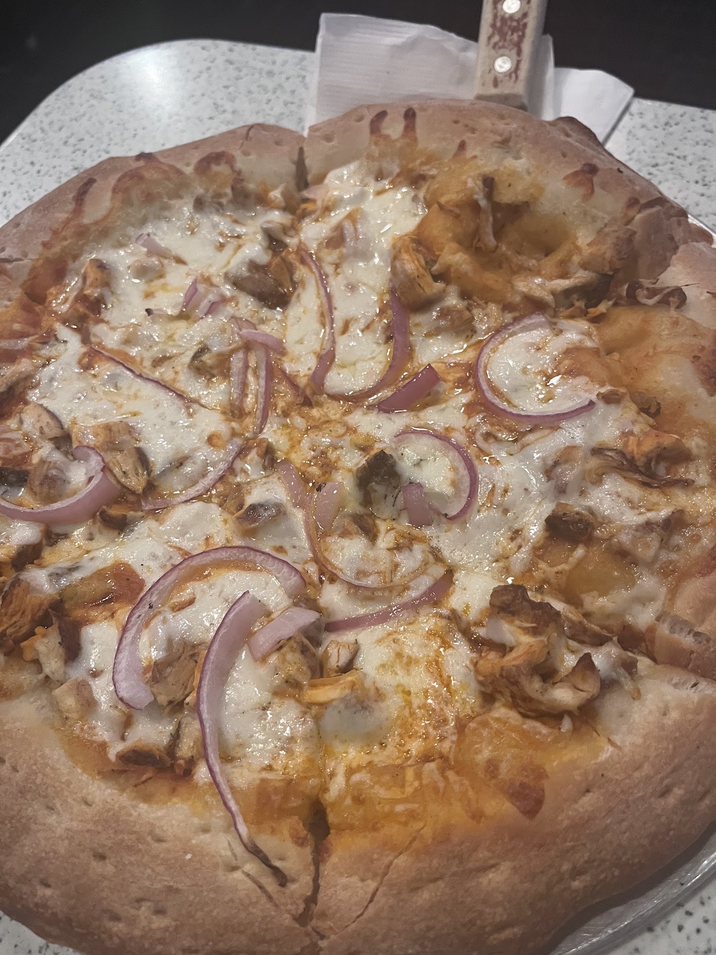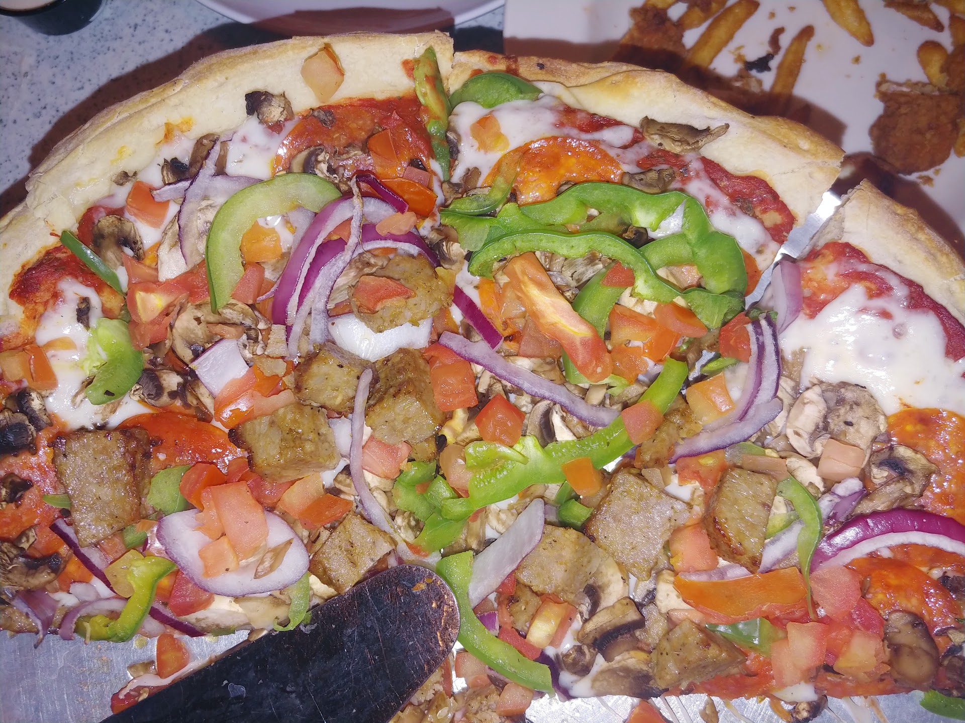 The pizza was under-cooked, could taste the dough on the inside. Fish tacos and the wrap were apparently pretty good.