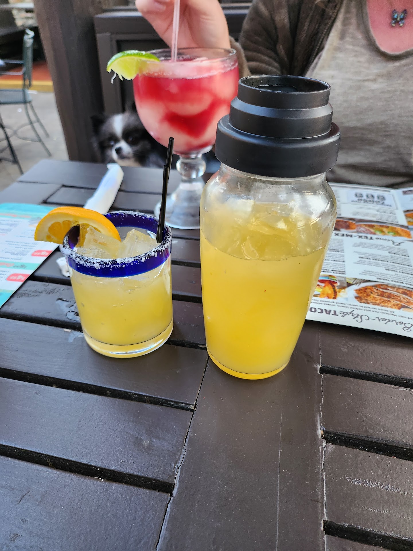 They have a dog friendly patio with plenty of seating and heaters, but part of the reason they're only getting 4 stars is the patio stayed kinda dirty the whole time we were there. Near where we sat was clean, but we had to carry our dogs out to keep them from eating all the junk off the floors. The other reason I'm dinging them is the service was a bit lackluster. They forgot to bring the tortillas for my wife's fajitas, and she had to go inside and find someone, even though we told the person who brought the food. It wasn't a big deal, just the whole dinner it didn't feel like we were checked on that often.