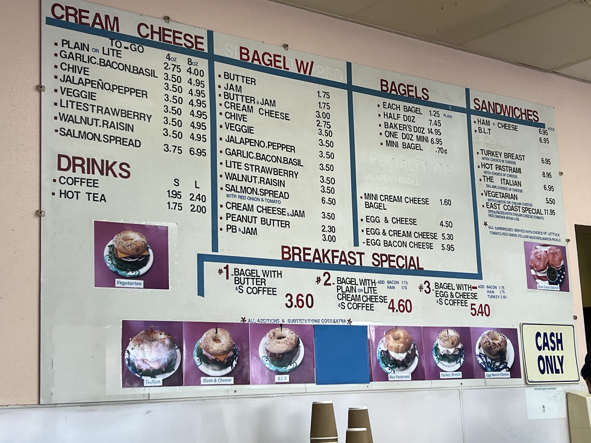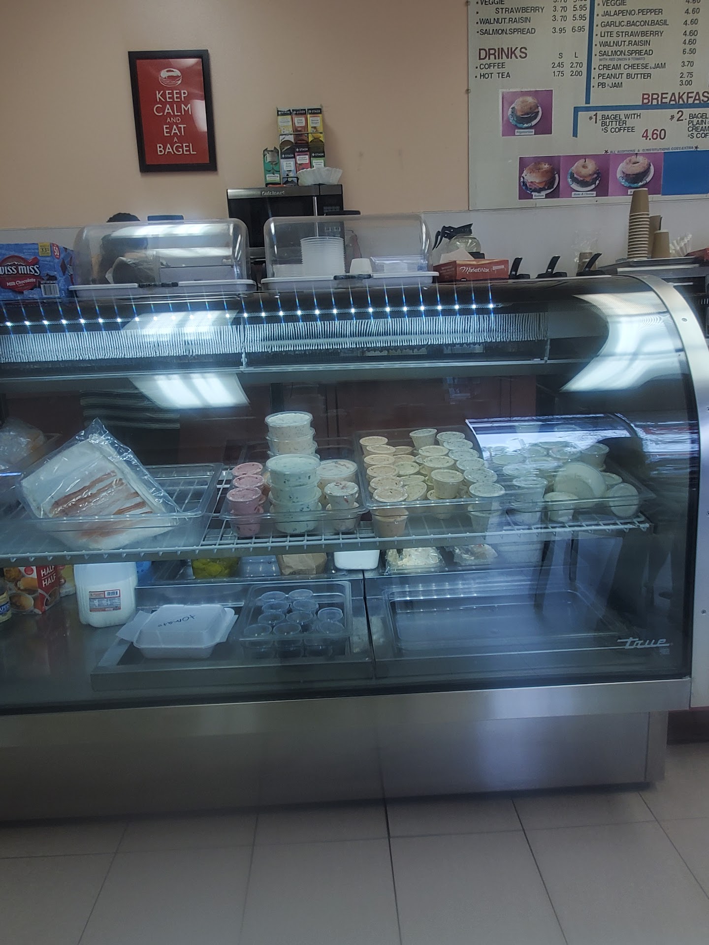They have lots of bagels and cream cheeses here. The bagels are a great texture. I got their East Coast Special aka a Lox Bagel and it was delicious. Generous amount of cream cheese and lox on there. The lox was perfect and clean. The onion and tomatoes were fresh. They put the capers on the side for you. I will definitely be coming back for this.