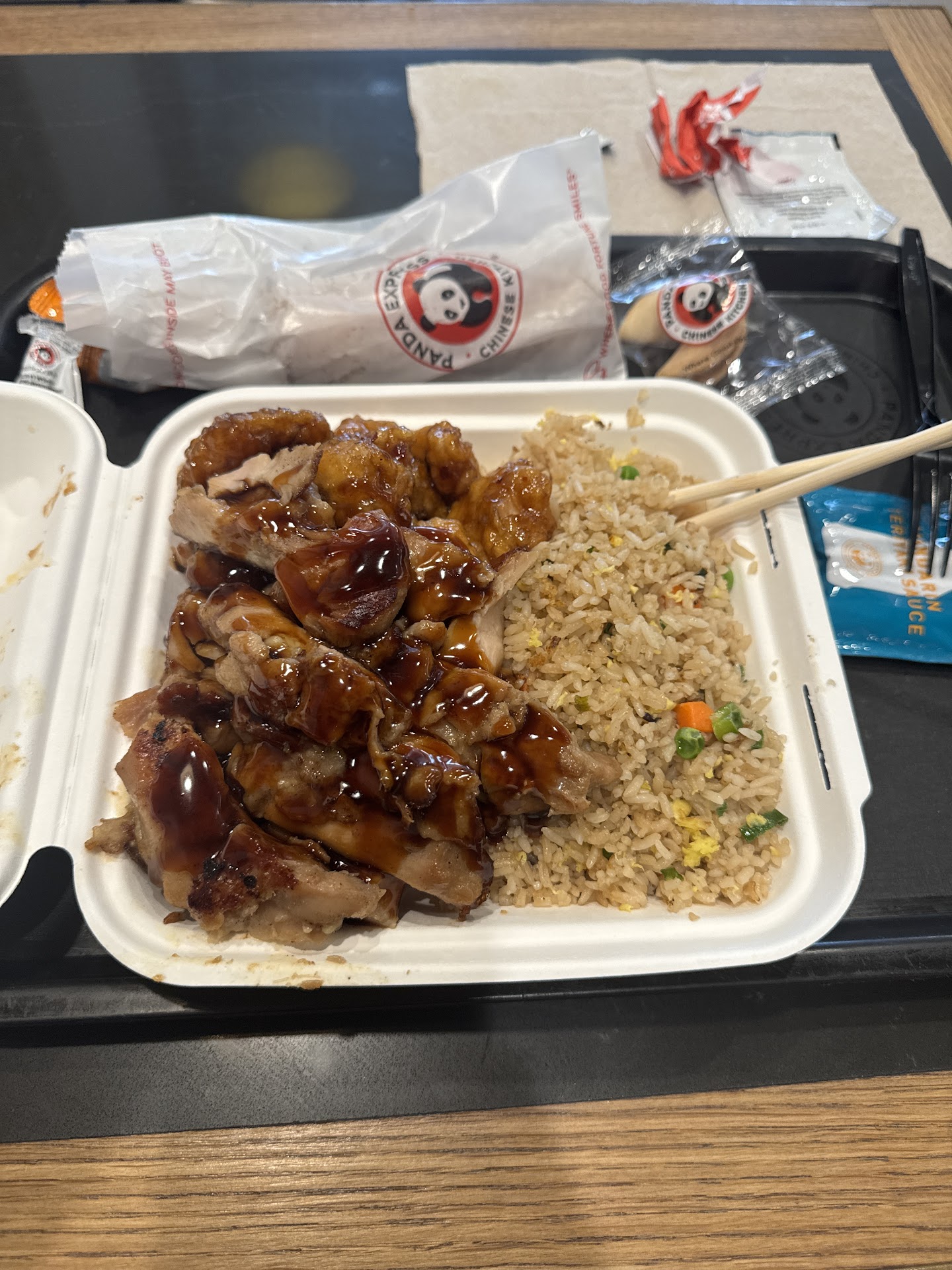 Read moreWell, it's Panda. The one upside with Panda is that they are one of the most consistent casual food chains, and it really isn't too bad. Make no mistake, this is not Chinese. Not even close. But the vegetables are always fresh, the price is affordable, and sometimes it's simply the best choice you have. As a very health-conscious person I almost never find myself here, but when I do, I can find healthy options (brown rice, steamed vegetables, etc... if you don't know orange chicken is a calorie and sugar/salt/fat bomb, you may have some reading to do) and am never surprised by what I get. Their employees always seem to be well trained and...