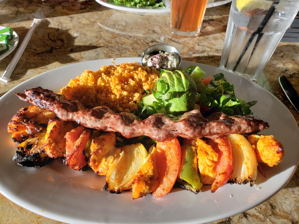 My wife got the chicken kebob plate. The 🐓 was very very tasty. The kebob made better because of the tomato 🍅 and white onion 🧅 that grilled along with the chicken - a seemingly clean version of a chicken parmigiana (no cheese here). There was a simple salad and some brown rice, both good complements but nothing like the kebob. It was 🤤.