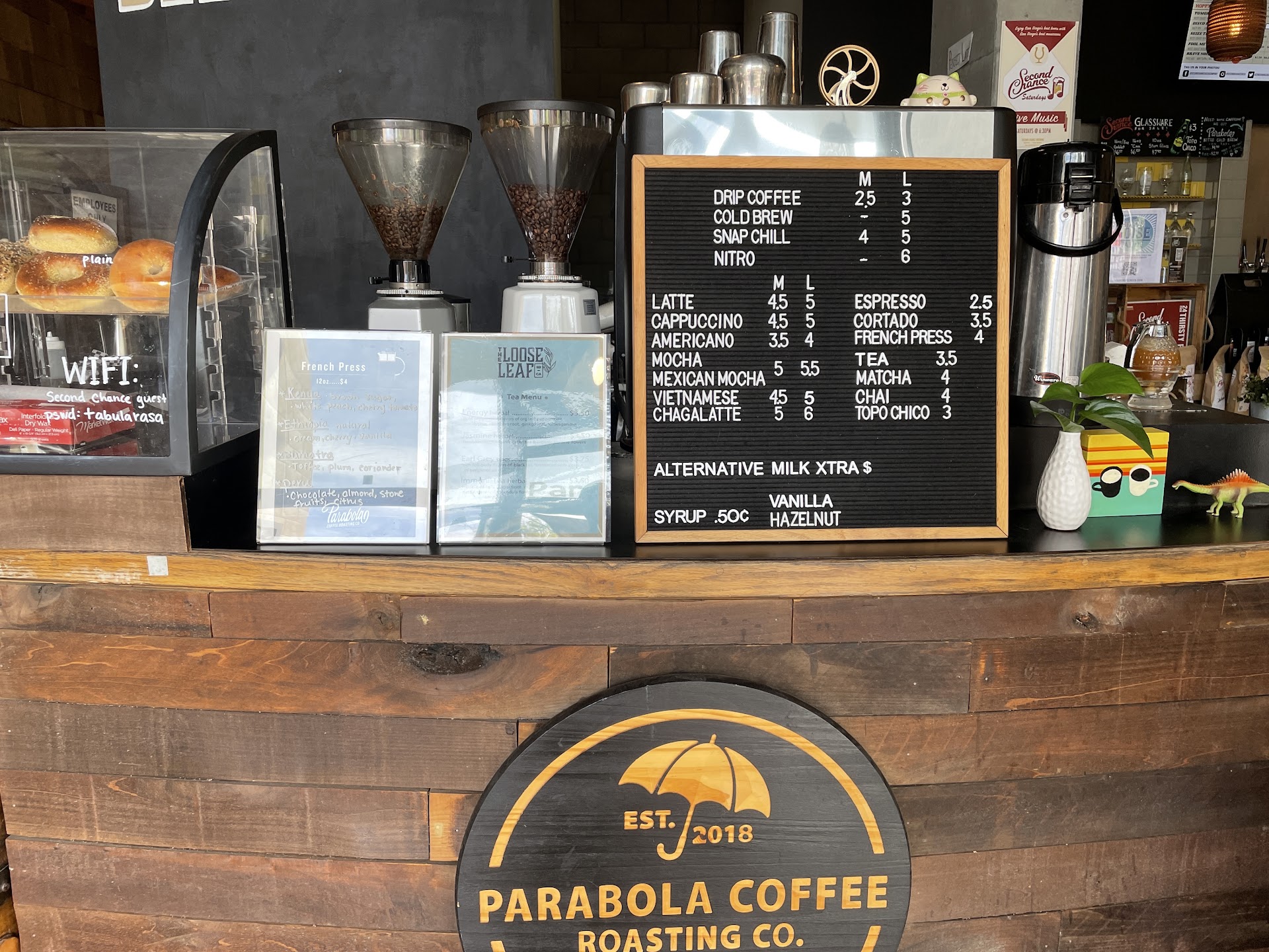 Parabola is a really wonderful addition to the North Park coffee establishments. The owners (who you often find working behind the counter themselves, though they recently added two new employees) are incredibly knowledgeable about their products and have made great recommendations for which style of their roasted beans would be a good fit for me and my partner. And the coffees and espresso drinks are delicious and have some of the best prices in the neighborhood. Theyâre located inside Second Chance Brewing, so they typically open those garage-style doors, which makes for plenty of socially distanced indoor/outdoor space to study or work (great WiFi, in my experience!). They even offer bean delivery via scooter if you arenât comfortable coming into the shop itself yet because of COVID concerns! Highly recommend giving this...