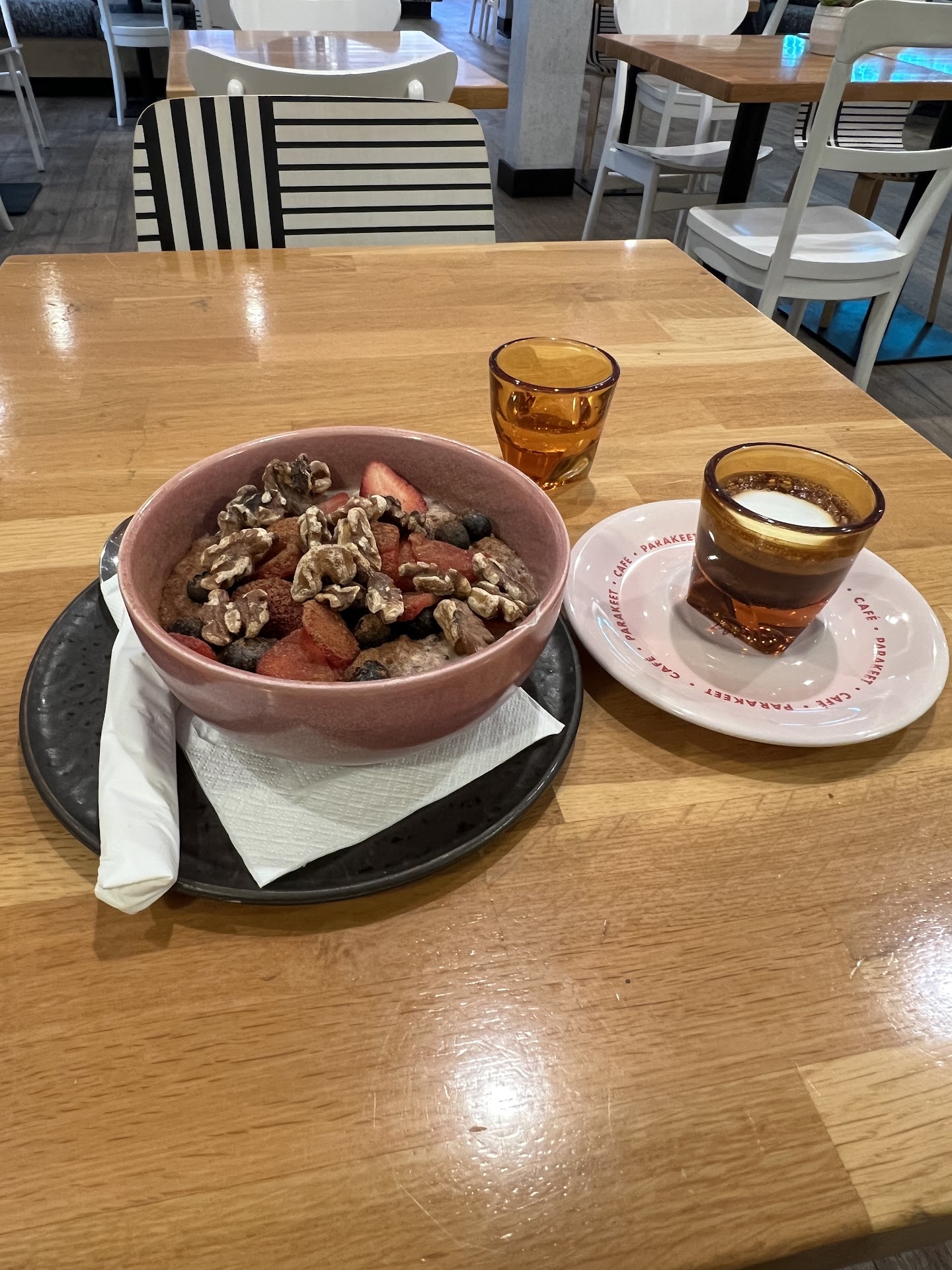 While visiting Parakeet CafĂ© in Little Italy, I discovered their Healthy Breakfast Bowl â though Iâd call it Breakfast for Your Brain. Oatmeal, quinoa, cinnamon, walnuts, and fresh fruit (today: blueberries and strawberries). Itâs clean, nourishing, and sneakily smart â everything you want to start your day sharp. And â no added sugar. Just real, whole ingredients.