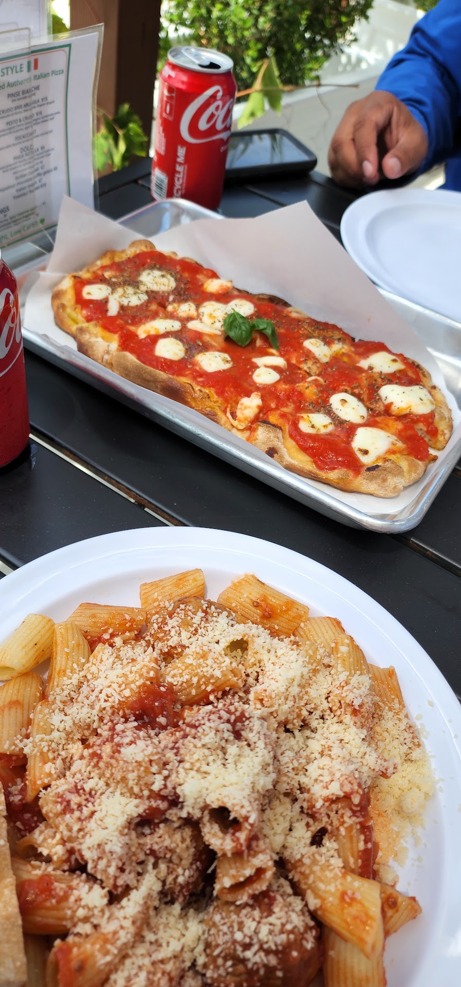 Read moreOrdered a Pesto Caprecce (with parmesan), Bolognese Rigatoni (no parmesan), and a Margherita Pizza. Both pasta serving sizes are light so adding on a side like the pizza is recommended. The Pesto tastes very good and a lot of basil flavor comes through The Caprecce pasta is not too dense but is also very thick and firm to eat; not only is it visually appealing but also pairs well with the pesto. The Bolognese Rigatoni has a similar quality of pasta to the Caprecce, the Bolognese part tastes very hearty with visible pieces of meat. The Margherita Pizza is a very simple thin crust pizza with lots of delicious tomato sauce and mozzarella cheese. If you're looking for a small add-on side, this pizza is a good pick. There is outdoor shaded seating in the adjacent space but beware if the weather calls for rain. Parking can be a challenge as this is PB so consider looking for parking as you begin approaching the restaurant. There are a few spots in front of the restaurant but they tend to fill up quickly when...