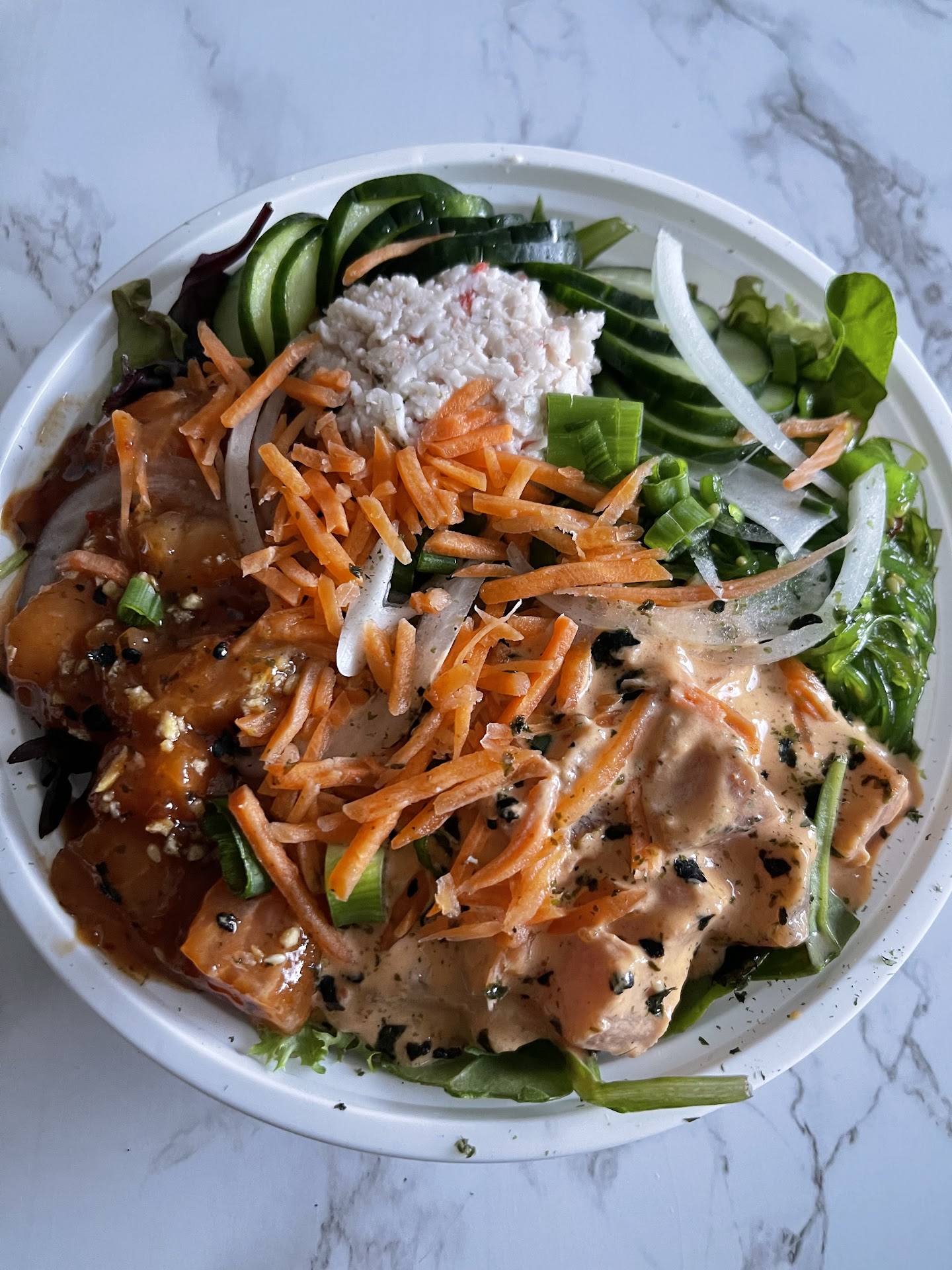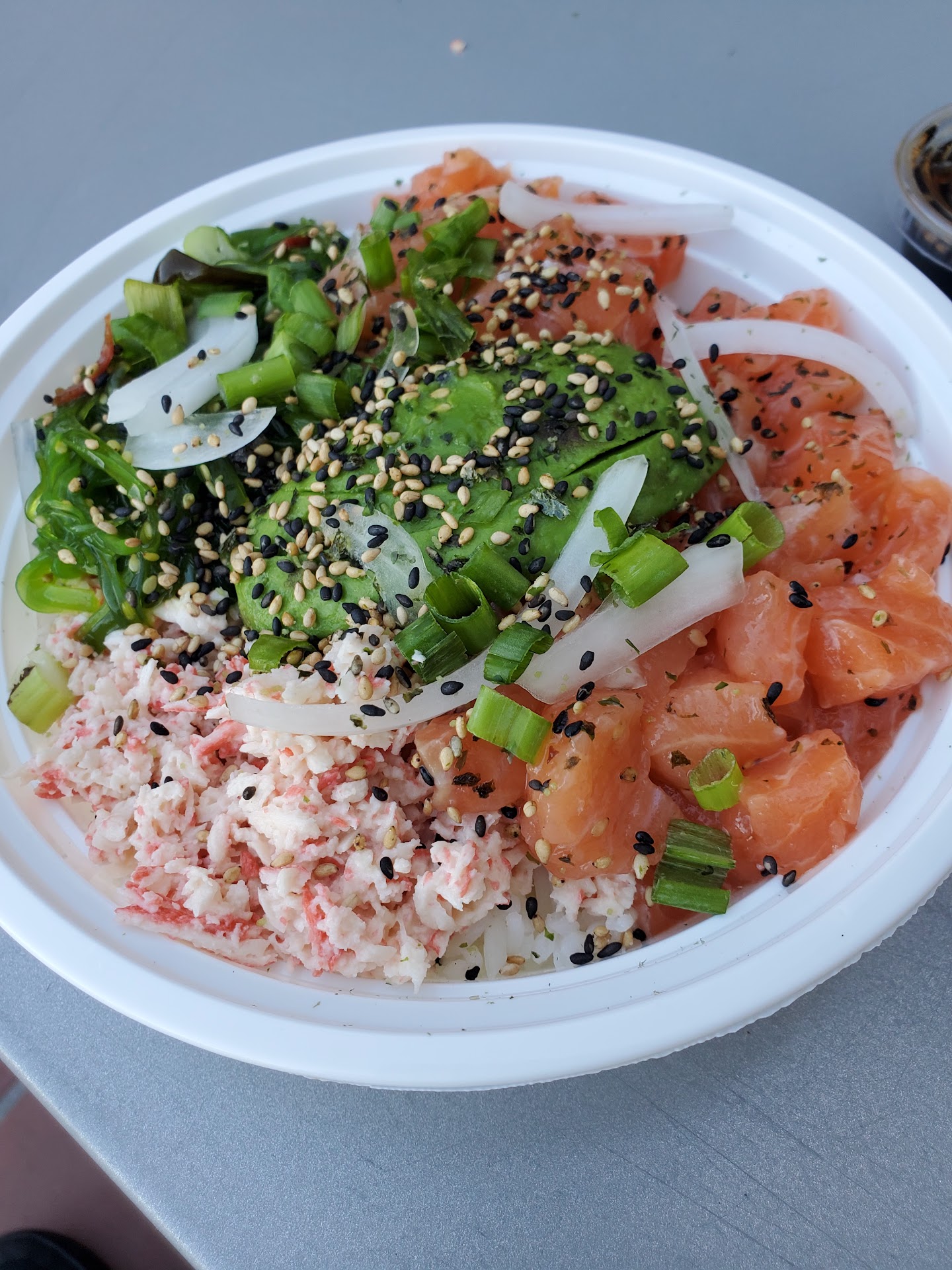 It does look nice, although the quality of the salmon and the imitation crab is noticeably lower than I think a typical Poke shop would serve. I don't understand why they are charging so much more compared to everywhere else, the only thing I can think of is that it is by the beach so.. tourist prices?