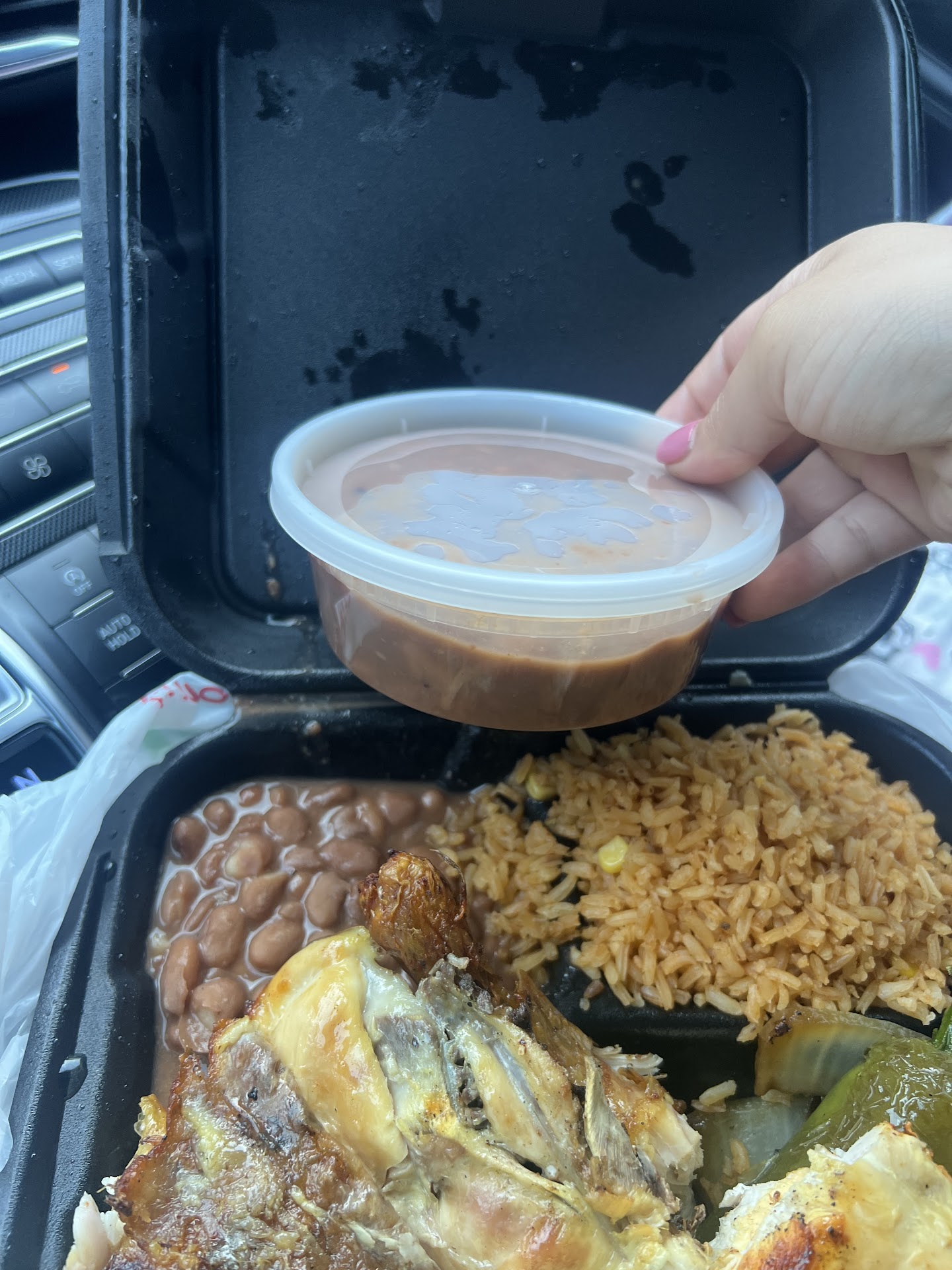 First time coming here and I ordered ahead for 2 people . Came with 4 pieces of chicken , 8 oz of rice and beans and 4 tortillas . I get to get my order and the girl name Alexia was rude. She hands me my order and I open it to check if everything is good to go . She left and I asked for a side of salsa and she ignored me & the sides were literally not 8oz. The beans were like 2-3spoons so I asked her and she said those are it . So I decided to spend more money and get an extra side . Once I left I called back because they are literally ripping people off . I’m telling her what comes with the order for 2 ? The chicken ? The 8oz sides and starts being so sarcastic like it’s “ 4 pieces to be exact” . Rude Girl. won’t be coming here again. SMH . You can see the 8oz I got extra versus there “ 8oz sides” that...