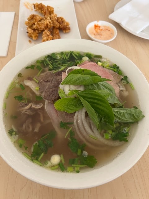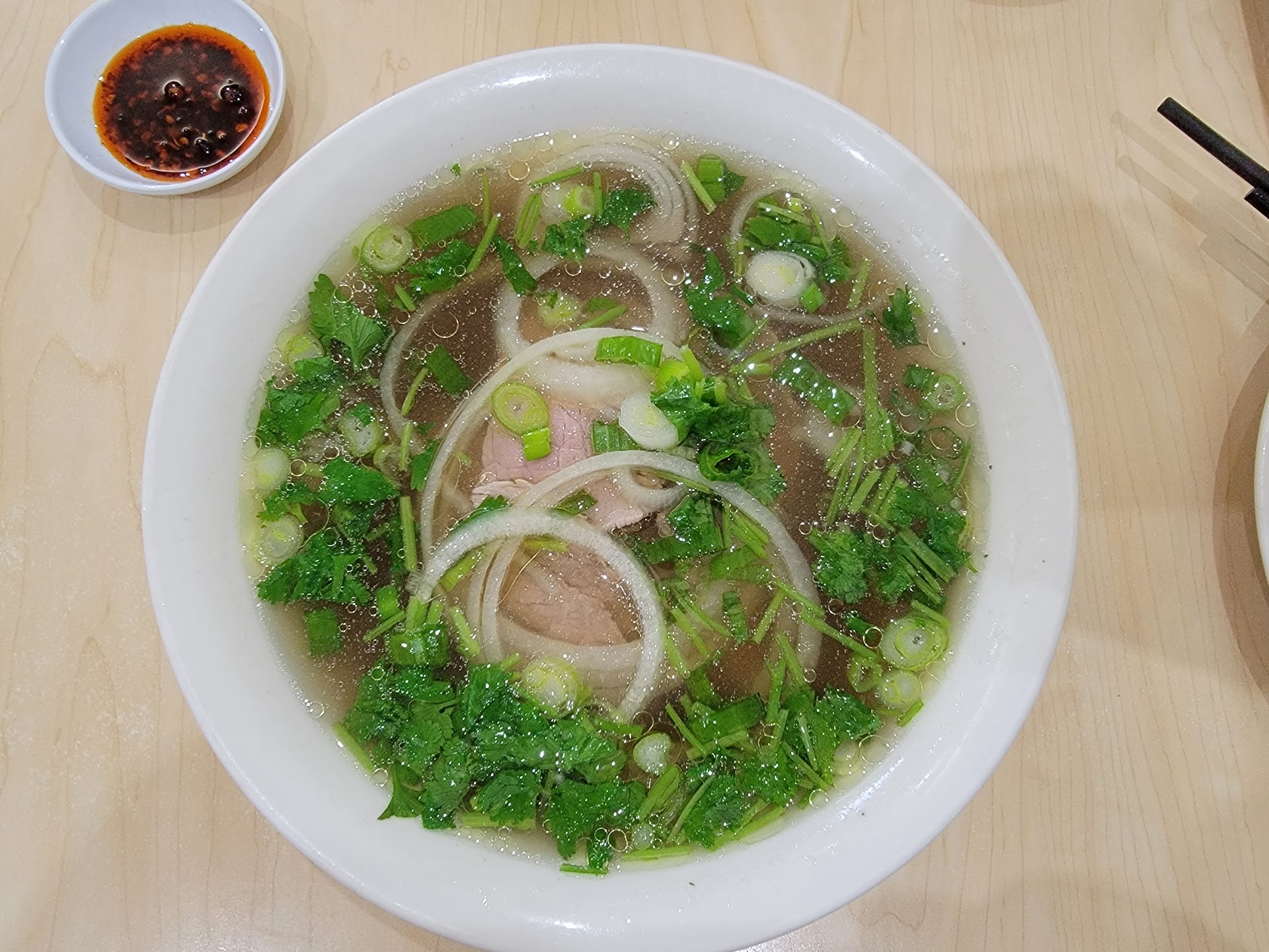 Went to find a new place for pho and away from sdsu. Trying something new. Great place! the place was very clean and friendly. We were immediately greeted and asked if it was for here or to go. We ate there of course. We ordered the large brisket and flank pho. And grilled chicken spring rolls. The pho was really good. I felt this pho was probably the most fresh I've have tasted. The broth was very good. The spring rolls were great but could of benefitted from more veggies.the service was excellent. One thing that could be challenging is parking but overall if your looking for a date out for 2 come here for a meal including 2 large bowls of pho and spring rolls for under $25 bucks. I will be coming here again to try...