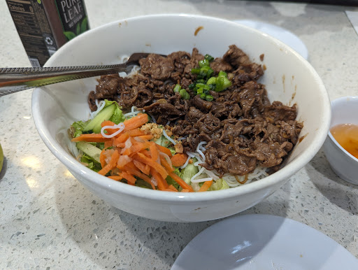 Craving pho and you’re in this area? Yes, the broth is good! It may not be like my most favorite pho broth in San Diego (i.e. Vietnamese Chinese Noodle House in National City) but it does the job! It’s got a good taste pho sure! If you’re dining in, you’ll get to eat your soup piping hot. Believe it or not, if you plan on picking up an order to go, the pho broth will still be hot as it is separated from the noodles so you can put it together at home. But just note: I wish they’d fill the to-go pho broth container to the top! Here is what I usually get here (also check out my pictures): Filet Mignon Pho - Sound fancy? It is more straightforward being that the filet mignon cut is tender and has absolutely no fat and ia it worth $15 in a pho soup? Yes! It tastes clean and, while you won’t get a lot of meat, it’s just enough to satisfy your tastebuds. Shrimp Spring Rolls: A bit thinner than other pho places but still tasty at $8.00 for 2 pieces BBQ Chicken Rice Plate: At $13.00, this generous rice plate is easily 2 servings! If you need a break from teriyaki chicken, this BBQ plate will surely deliver. Sauce is already on the sliced chicken. The servers are friendly and welcome you as you walks in whether you’re dining in or picking up an order. If you’re picking up an order, head straight towards the cashier counter towards the back to pay for it! You can sit at an empty table as you’re waiting for your food if it’s...