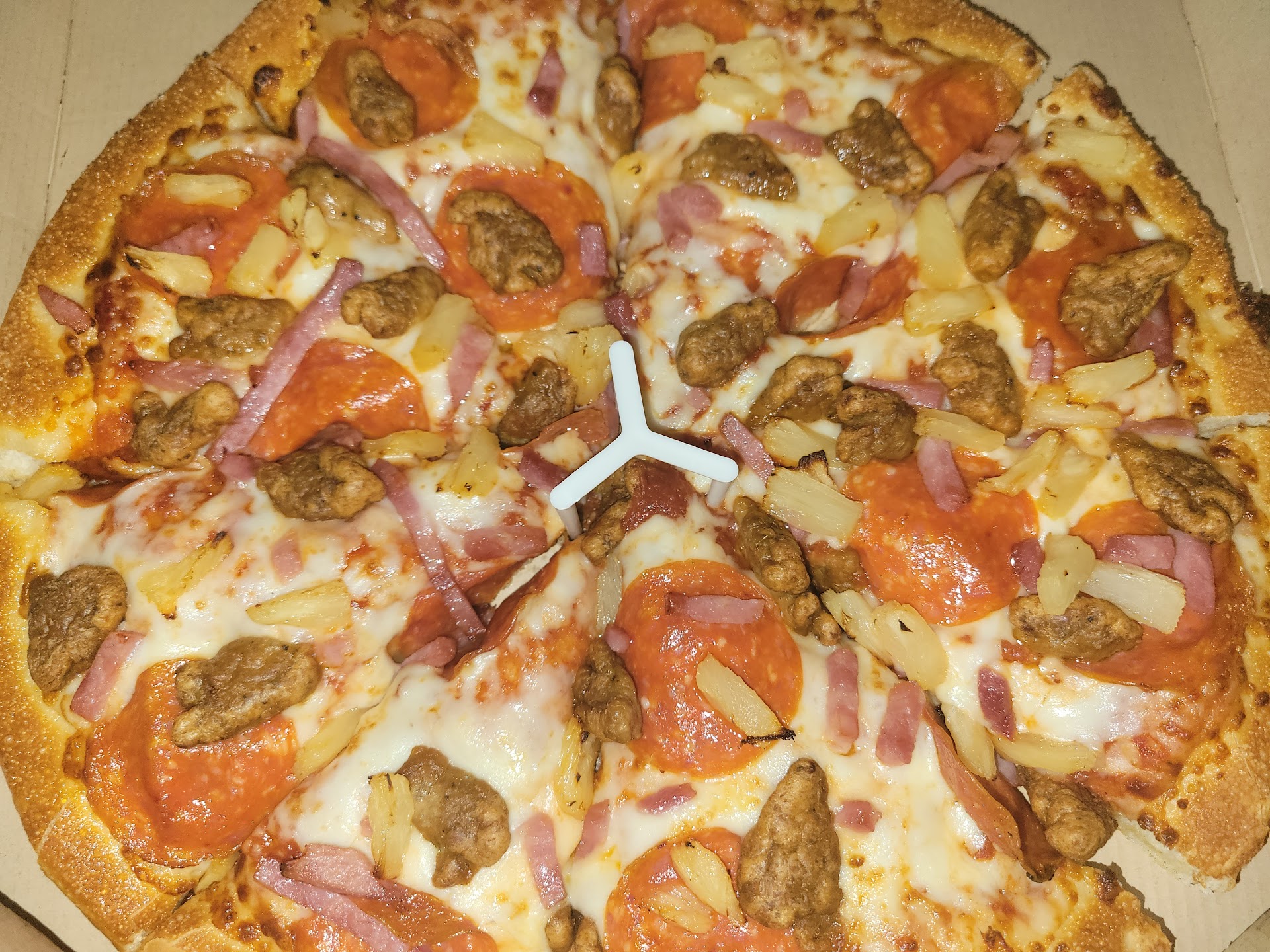 Pizza was excellent, delivery was great, just be aware of your body's limitations when it comes to the Hut otherwise you too will leave a 5-star review from your throne...