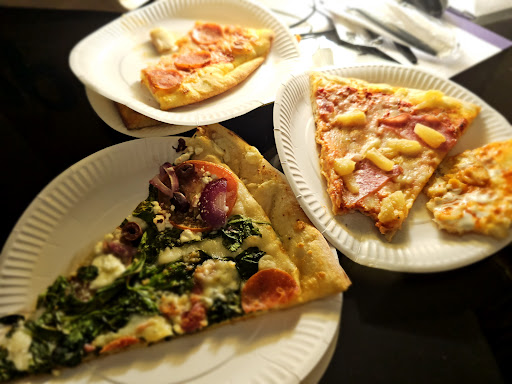 Read morelegit pizza by the slice location...kind of crazy i had never been here before. showing up aroun 9 pm on a...saturday i think...kinda limited my options. i had wanted a slice of the margarita. ended up with the greek (which was totally margarita just with olives on it), and also some other pepperoni & spinach type one. the slices are generous and fresh. id love to order a whole pie something to really get it in all its glory.