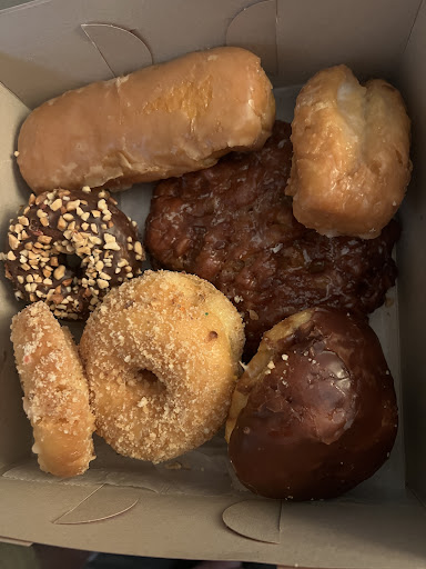 Snug shop offering old-fashioned donuts & fritters plus frozen yogurt in waffle cones.