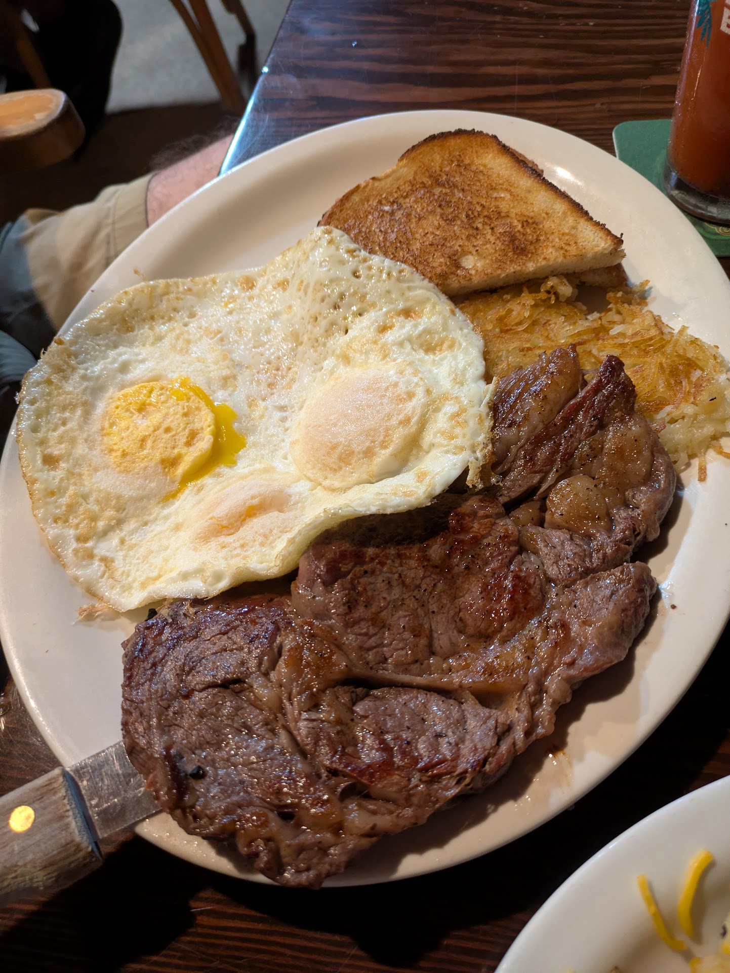 The worst part of this restaurant is deciding what you want to eat. From homestyle and Mexicali breakfasts to the burgers and sandwiches that are sure to grab your attention, it is initially best to follow your heart and plan another trip to eat. Quality delicious food is in fact the name of the game, and Point Break may in fact be writing the playbook. I got the tamales with the tomatillo sauce, a recommendation from none other than Ellen herself. The food she presented was almost enough to satiate my appetite from looks alone. Upon my first bite I was sent into another realm. I believe it was the great warrior poet Britney who said; "with the taste of your lips I'm on a ride." I believe she in fact replaced the words "tamales from Point Break Cafe" with the word "lips" just for the sake of the melody, but I know what she really meant. The tamale was so well crafted my abuelita herself would give her stamp of approval (a feat harder to earn than a third Michelin star, by the way.) A perfect texture hits your mouth, the cheesiness gives that savory, melty, fatty flavor we Americans so crave. Finally, the sauce. Oh the sauce. Tangy, a little sweet, and absolutely powerful flavors first hit your olfactory senses and then your tastebuds, a 1-2 combo you're actually honored to receive. A sauce so robust my father exclaimed "Oh!" in a manner I've never seen a man deliver before.