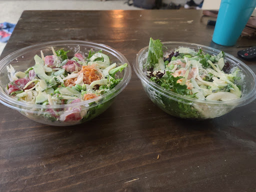 We had a design-it-yourself salmon and white rice, and organic spring mix salad with ahi tuna poke, as well as a veggie poke.