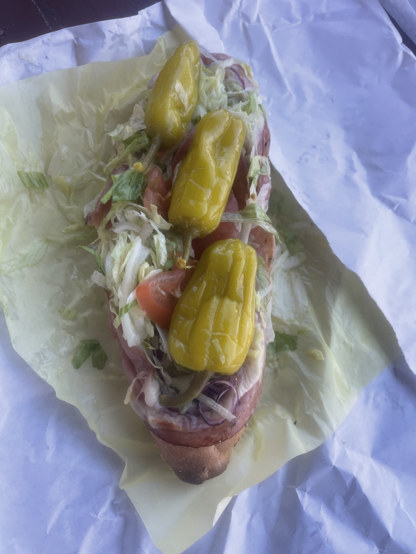 My wife and I were casually walking around seeing the beaches when we passed by a gentleman eating a sandwich and my wife noticed it and said it looked so good so we decided to ask which one he was having . He then told us he was eating the Torpedo sandwich right before he rode off on his bike. We looked at the menu and saw it was the first sandwich on the list, and since we were up early and could use a snack we decided to go ahead and try it. As we waiting for our sandwich, at least 4 other people came by and ordered the same sandwich plus other tops picks on the menus. We asked for ours warmed and let me tell you. The bread was so crunchy and toasty, the cheese was warm and just the right amount of melted. We sat in the car idling, right before we took off just to take a bite and try it. My wife and I sat in the car trading bite for bite until we devoured the sandwich. We finished it off with a bag of jalapeño chips and we looked at each other with a big smile as if we both were thinking the same thing.