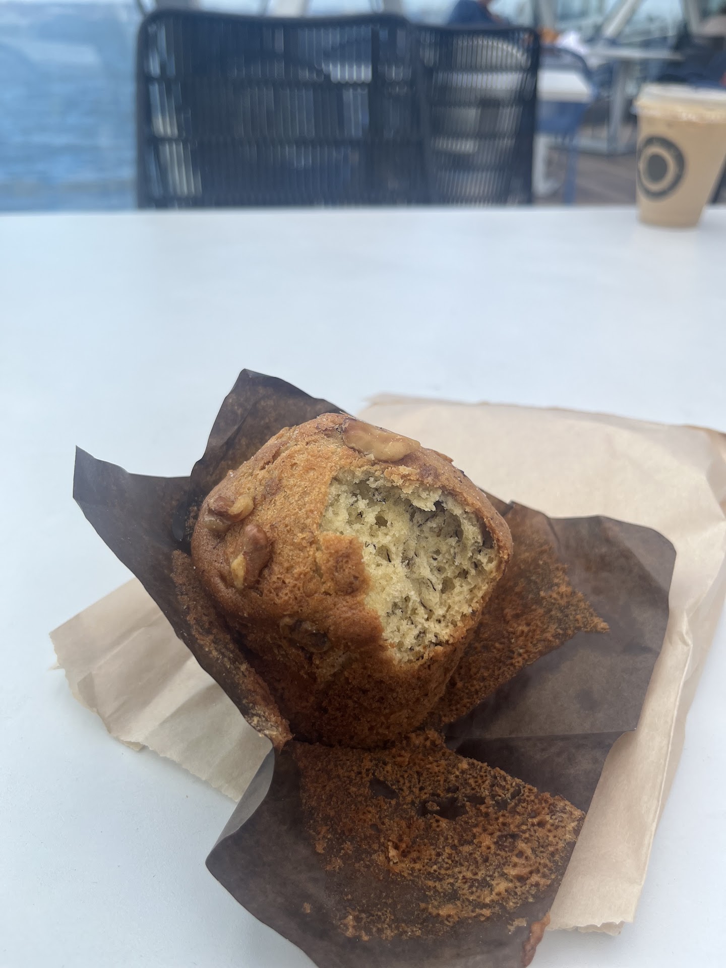 I ordered a muffin and found it disappointingly dry. The cashier wasn’t very welcoming either, which put a damper on the mood, especially for a birthday visit. I also ordered fish and chips from the Dockside menu. While I’m a picky eater and it wasn’t exactly my thing, I can say the fish was served hot with a crunchy batter.